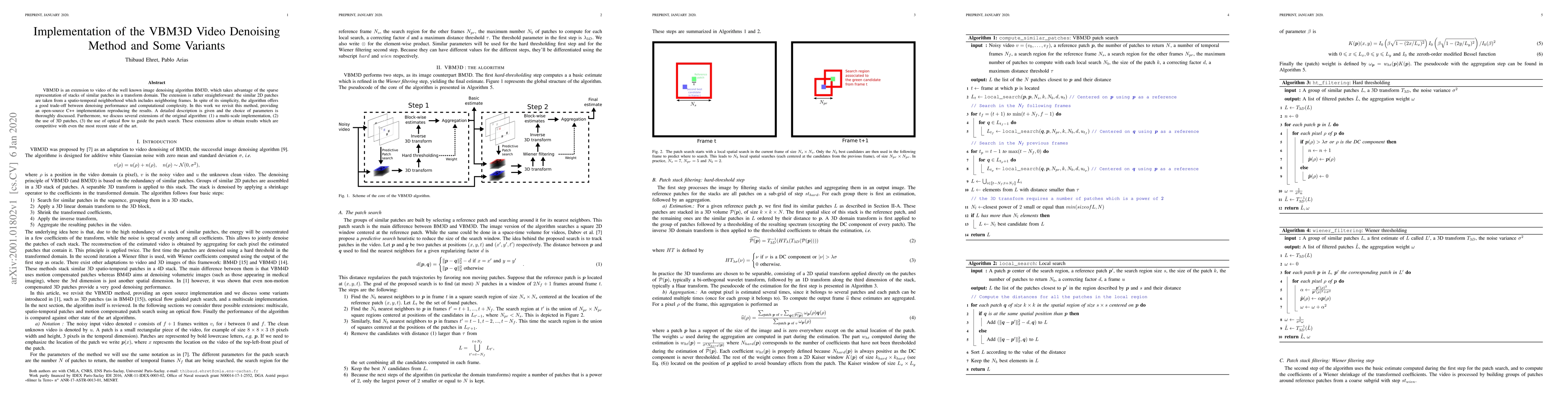 Researchers implemented the VBM3D video denoising method and its variants, achieving competitive results with state-of-the-art algorithms through simple yet effective extensions.