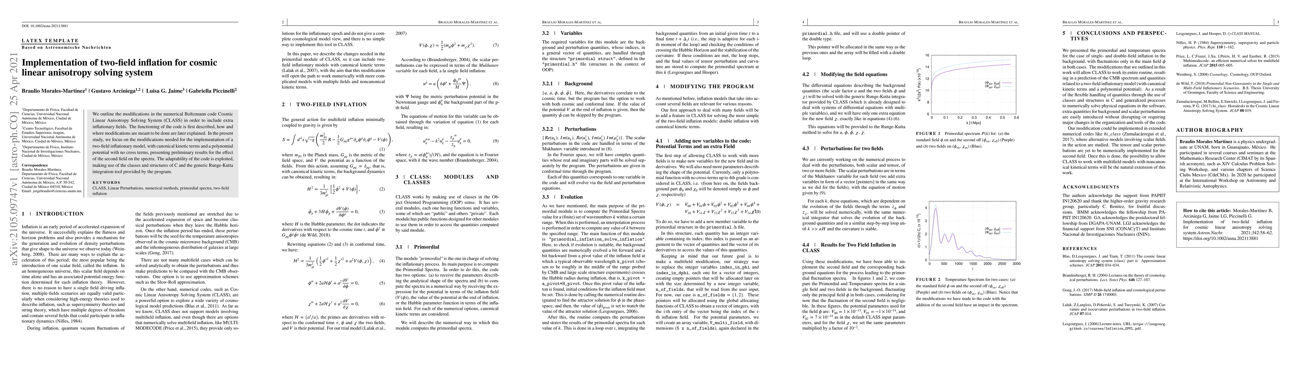 This paper details modifications to the Cosmic Linear Anisotropy Solving System (CLASS) code to incorporate a two-field inflationary model, focusing on canonical kinetic terms and polynomial potentials. Preliminary results show the impact of the second field on the spectra, demonstrating the code's adaptability.