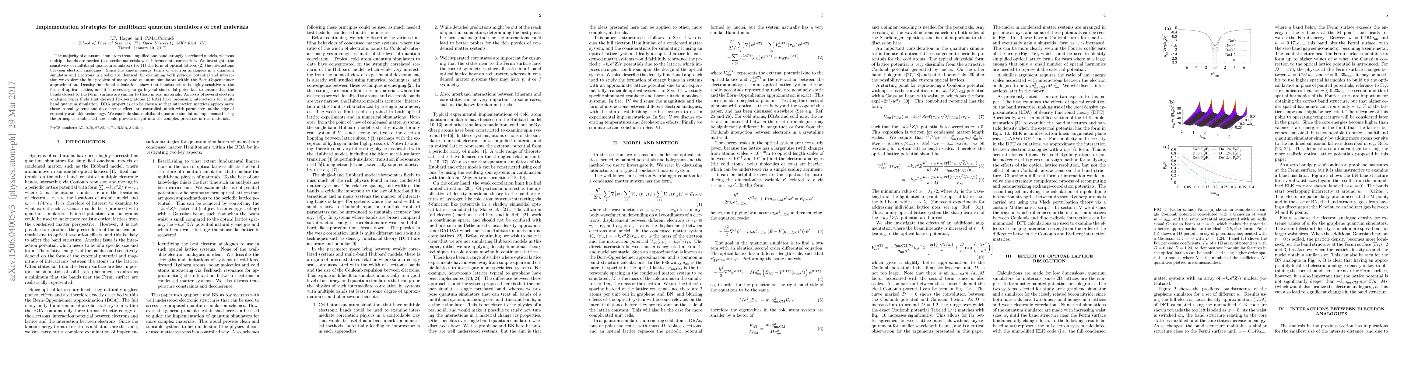 This paper explores the implementation strategies for multiband quantum simulators to accurately model materials with intermediate electron correlations. It finds that optical lattices beyond sinusoidal potentials and dressed Rydberg atoms (DRAs) with tailored interactions are essential for simulating the complex band structure and interactions in real materials.