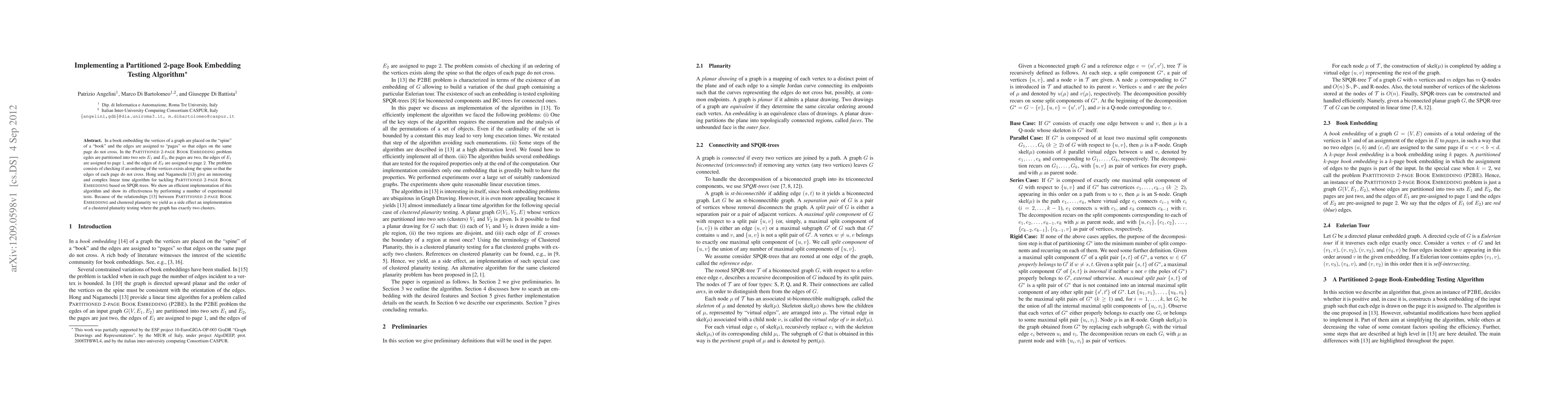 The implementation of a constrained version of the 2-page book embedding algorithm using SPQR-trees, which is an improvement over existing solutions.