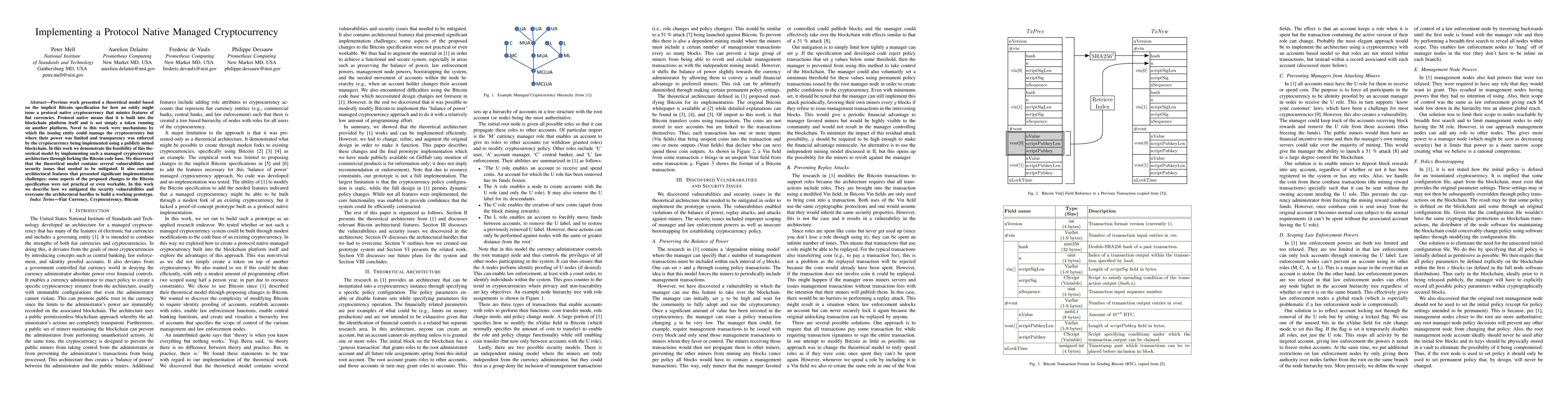 Researchers demonstrate the feasibility of implementing a protocol-native managed cryptocurrency architecture by forking the Bitcoin code base, identifying vulnerabilities and security issues that were mitigated to build a working prototype.