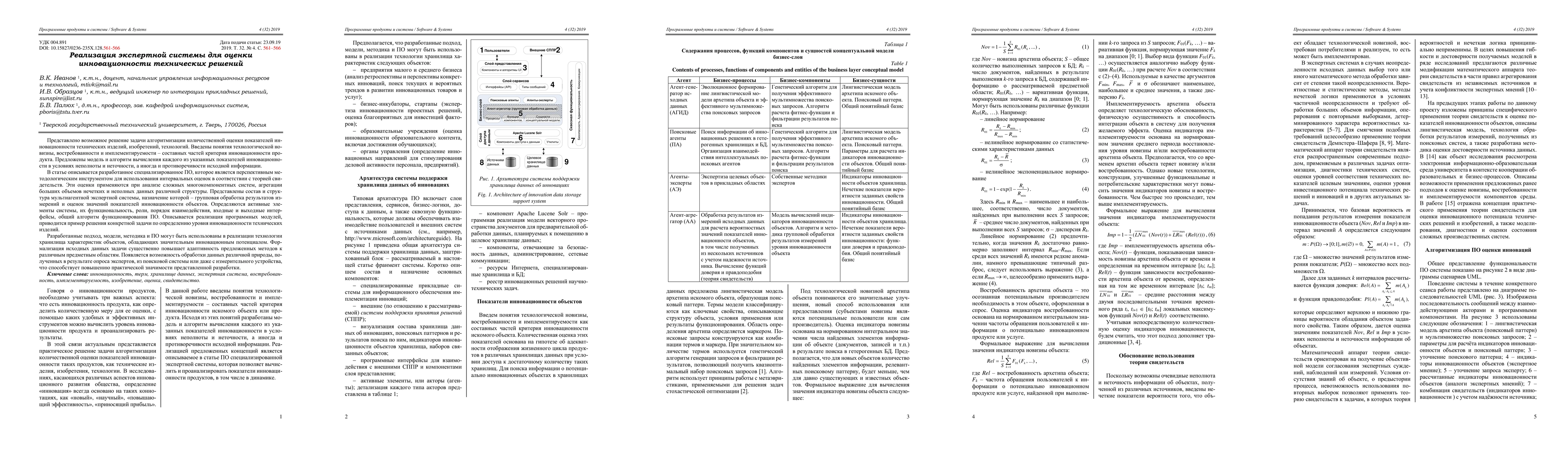 The paper proposes a model and algorithm for evaluating the innovativeness of technical products using a multi-agent expert system, addressing incomplete and inconsistent data through interval estimations based on the theory of evidence. The developed software aims to estimate innovation indicators by processing measurement results and analyzing complex multicomponent systems.
