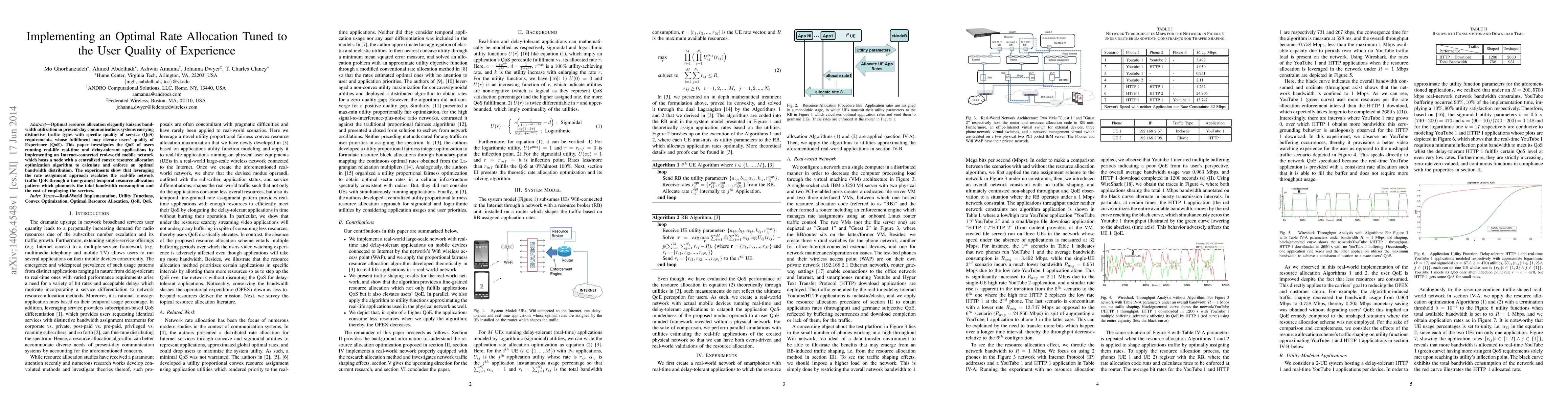 Optimal resource allocation elegantly kaizens bandwidth utilization in present-day communications systems carrying distinctive traffic types with specific quality of service (QoS) requirements, whose fulfillment may elevate users' quality of Experience (QoE). This paper investigates the QoE of users running real-life real-time and delay-tolerant applications by implementing an Internet-connected real-world mobile network which hosts a node with a centralized convex resource allocation optimization algorithm to calculate and enforce an optimal bandwidth distribution. The experiments show that leveraging the rate assignment approach escalates the real-life network traffic QoE through a fine-grained temporal resource allocation pattern which plummets the total bandwidth consumption and the cost of employing the services.