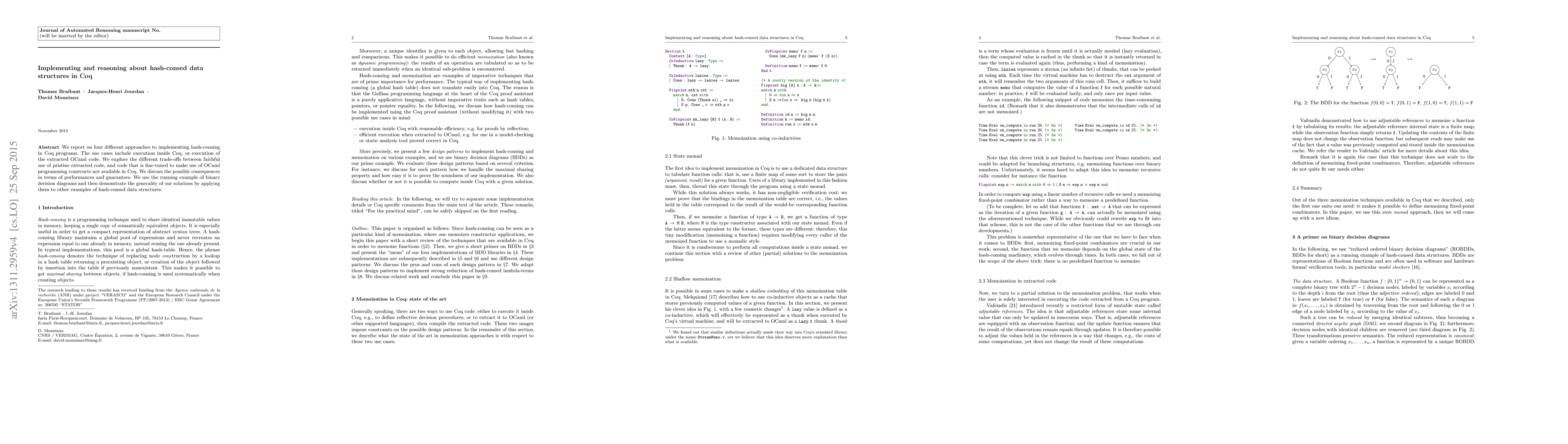 This paper explores four methods for implementing hash-consing in Coq programs, analyzing trade-offs between maintaining pristine extracted OCaml code and optimizing for OCaml features. It examines performance and guarantees, using binary decision diagrams as a primary example and demonstrating the solutions' applicability to other hash-consed data structures.