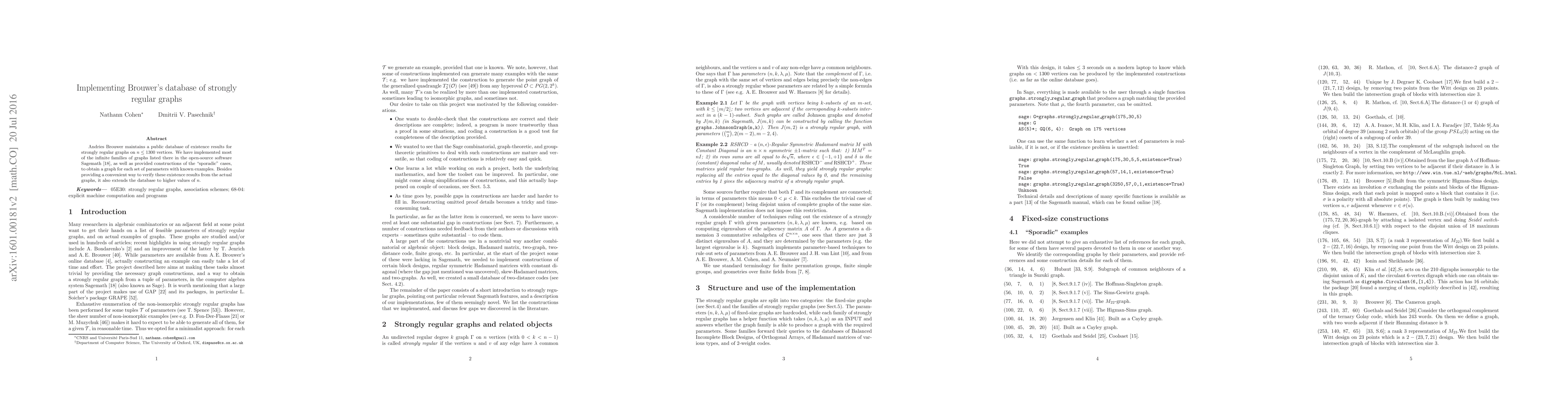 Researchers implemented a database of strongly regular graphs with up to 1300 vertices, extending Andries Brouwer's existing work and making existence results for higher values of n accessible.