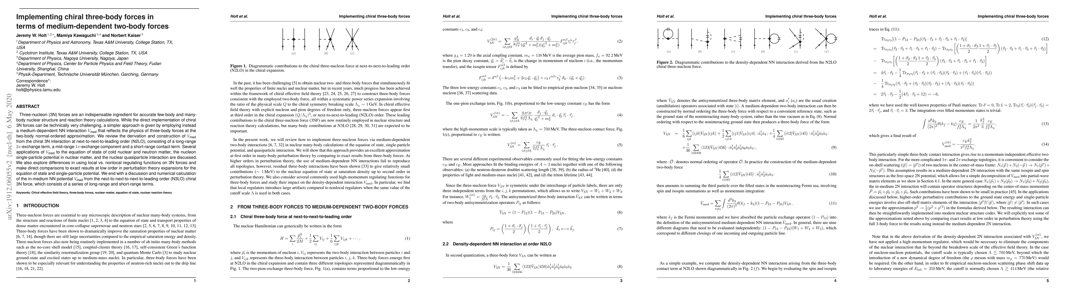 This paper reviews the derivation of a medium-dependent two-body force, V_med, from chiral three-nucleon forces to simplify their implementation in nuclear structure calculations. It discusses applications of V_med in various nuclear contexts and compares its results to exact low-order perturbation theory calculations.