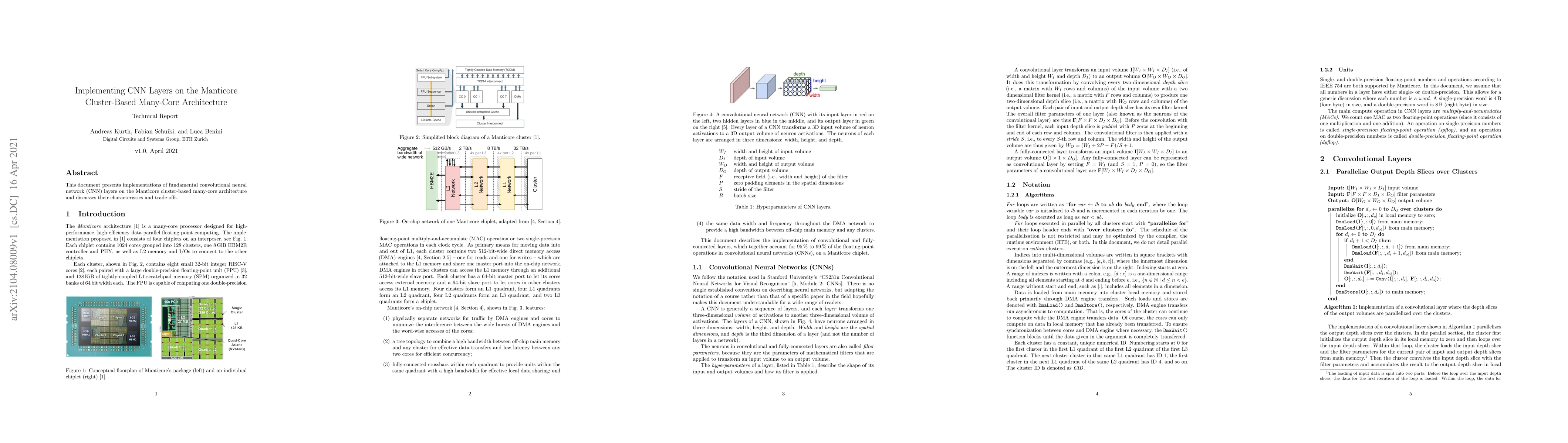 Summary: This paper explores the implementation of convolutional neural network (CNN) layers on the Manticore cluster-based many-core architecture, analyzing its performance characteristics and evaluating the trade-offs involved in this approach.