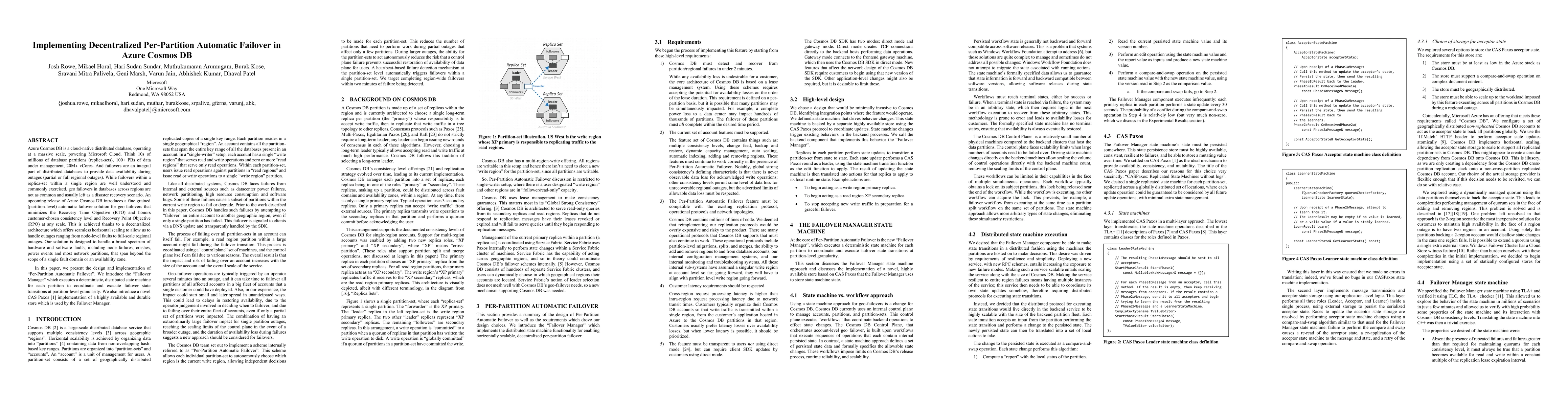 A new solution for automatic failover in Azure Cosmos DB provides seamless geo failovers with minimal recovery time, honoring customer chosen consistency levels and RPOs at any scale.