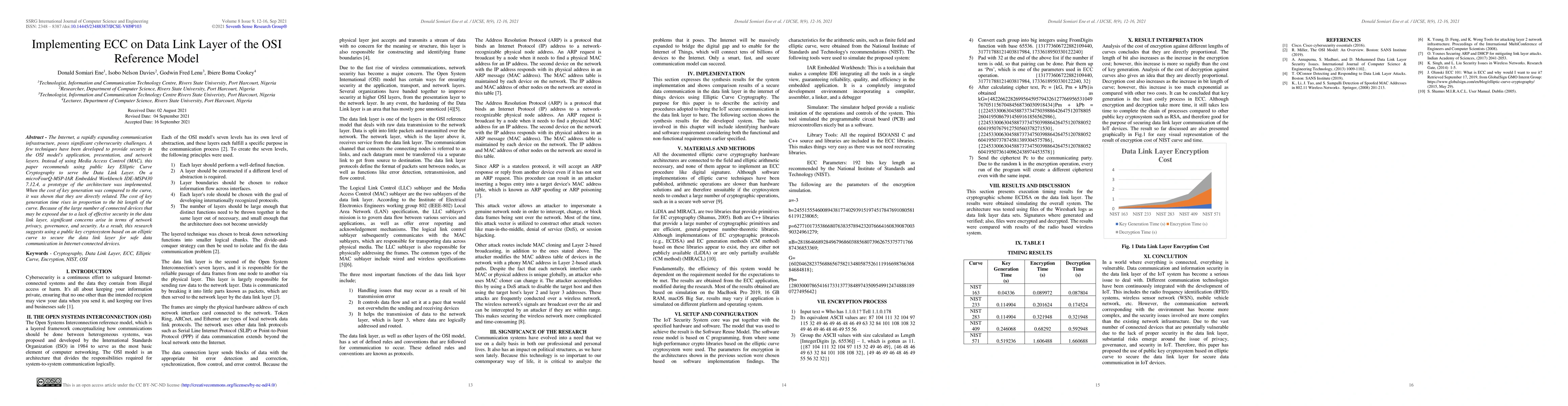 The Internet, a rapidly expanding communication infrastructure, poses significant cybersecurity challenges. A few techniques have been developed to provide security in the OSI model's application, presentation, and network layers. Instead of using Media Access Control (MAC), this paper recommends using public key Elliptic Curve Cryptography to serve the Data Link Layer. On a microFourQ-MSP-IAR Embedded Workbench IDE-MSP430 7.12.4, a prototype of the architecture was implemented. When the cost of key generation was compared to the curve, it was shown that they are directly related. The cost of key generation time rises in proportion to the bit length of the curve. Because of the large number of connected devices that may be exposed due to a lack of effective security in the data link layer, significant concerns arise in terms of network privacy, governance, and security. As a result, this research suggests using a public key cryptosystem based on an elliptic curve to secure the data link layer for safe data communication in Internet-connected devices.