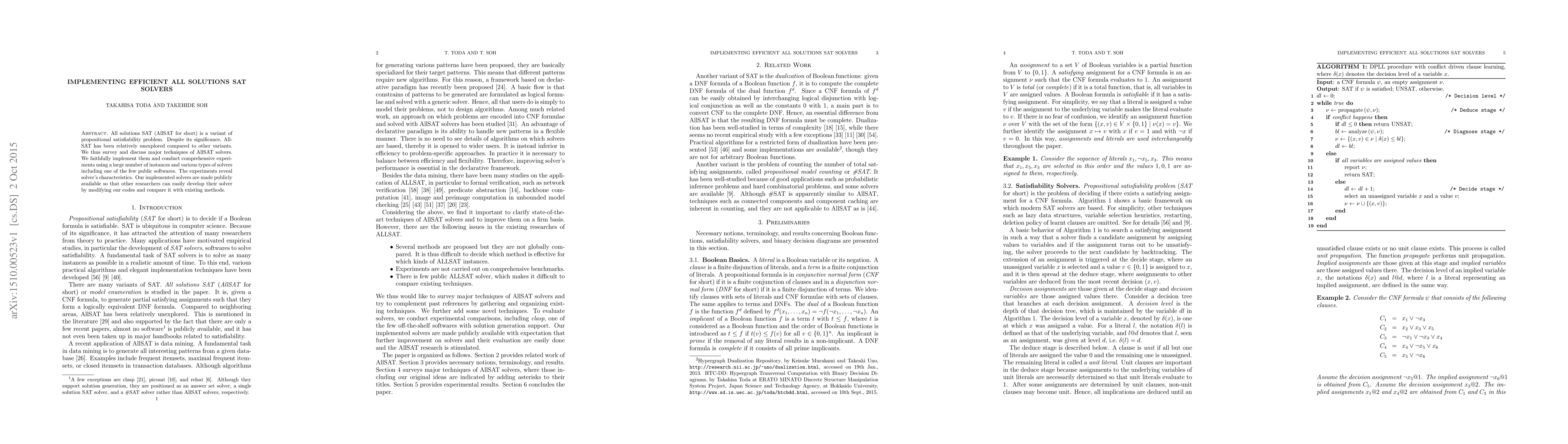 The paper presents detailed pseudocode for non-blocking procedures with decision-level-based first UIP scheme and non-chronological backtracking with level limit, along with a formula-BDD caching mechanism.