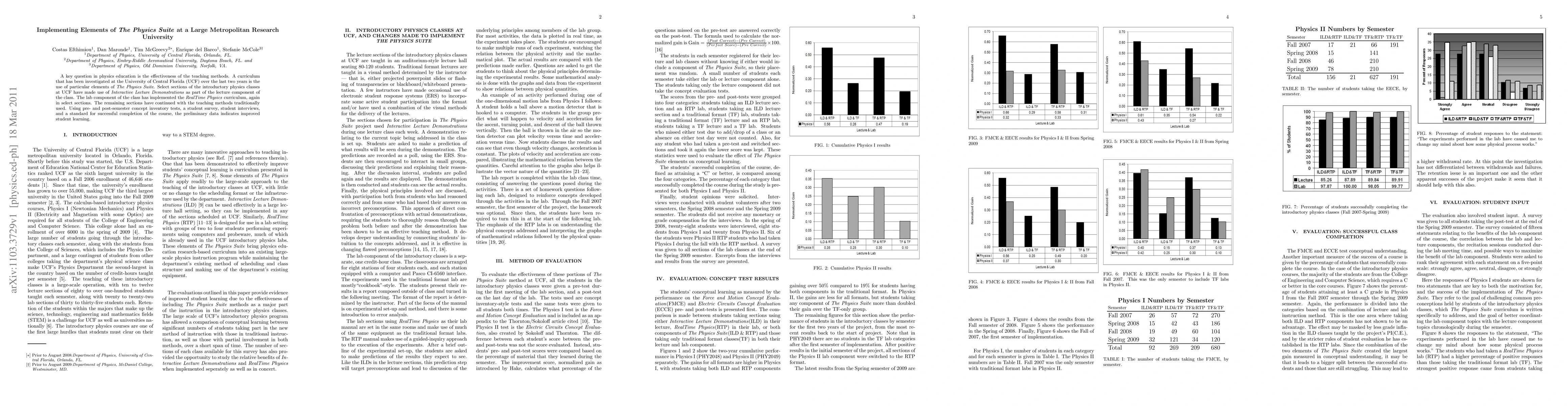 A key question in physics education is the effectiveness of the teaching methods. A curriculum that has been investigated at the University of Central Florida (UCF) over a period of two years is the use of particular elements of The Physics Suite. Select sections of the introductory physics classes at UCF have made use of Interactive Lecture Demonstrations as part of the lecture component of the class. The lab component of the class has implemented the RealTime Physics curriculum, again in select sections. The remaining sections have continued with the teaching methods traditionally used. Using pre- and post-semester concept inventory tests, a student survey, student interviews, and a standard for successful completion of the course, the data indicates improved student learning.