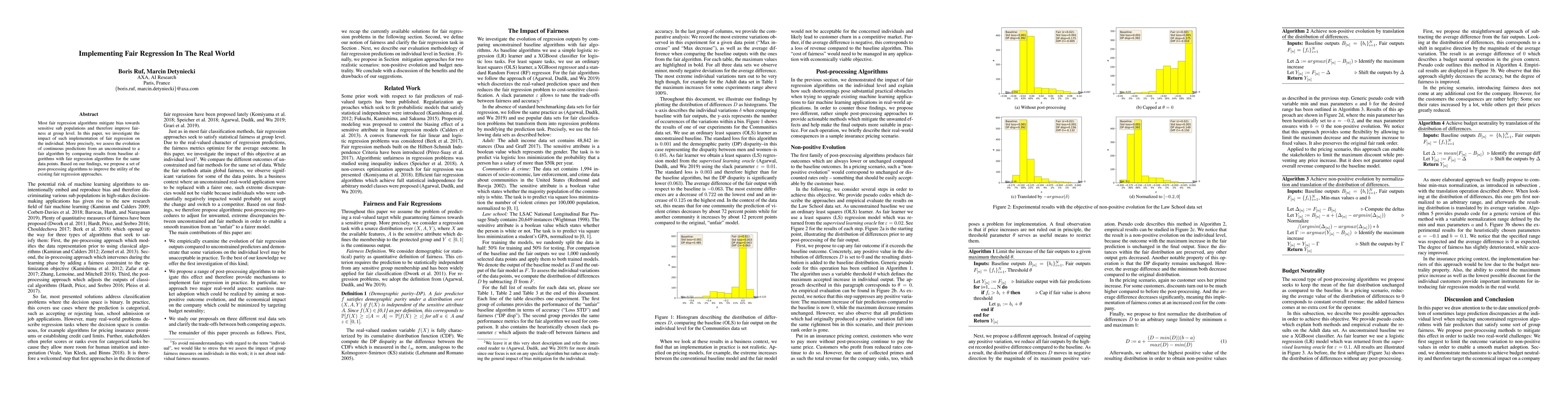 This paper examines the effects of implementing fair regression algorithms on individual predictions, comparing them to baseline models. It proposes post-processing techniques to enhance the utility of existing fair regression approaches while maintaining fairness.