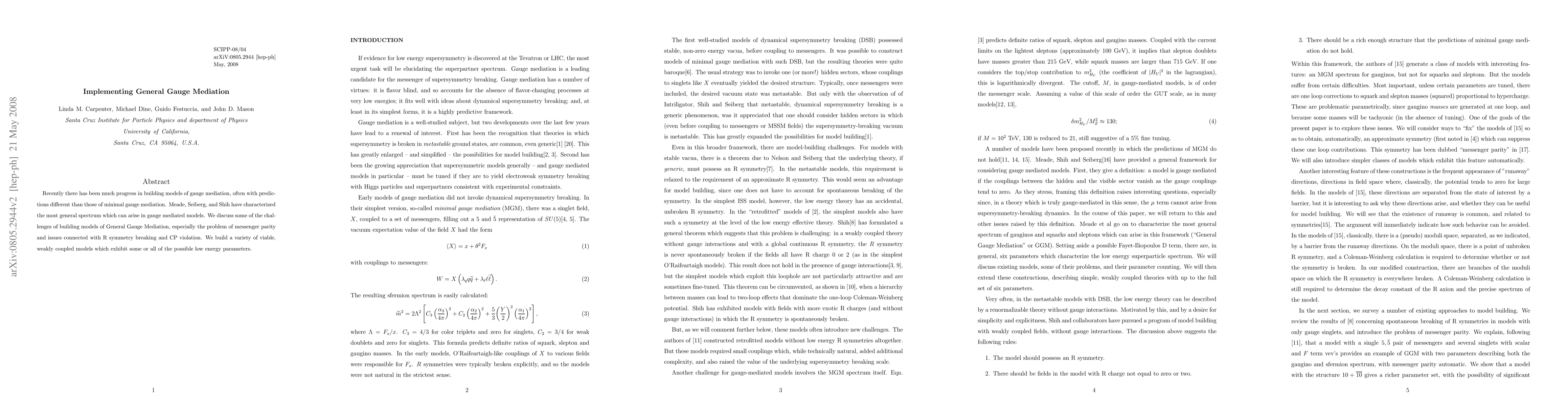 This paper explores the complexities of constructing viable models in General Gauge Mediation, addressing challenges like messenger parity, R symmetry breaking, and CP violation, and presents several weakly coupled models demonstrating various low-energy parameters.