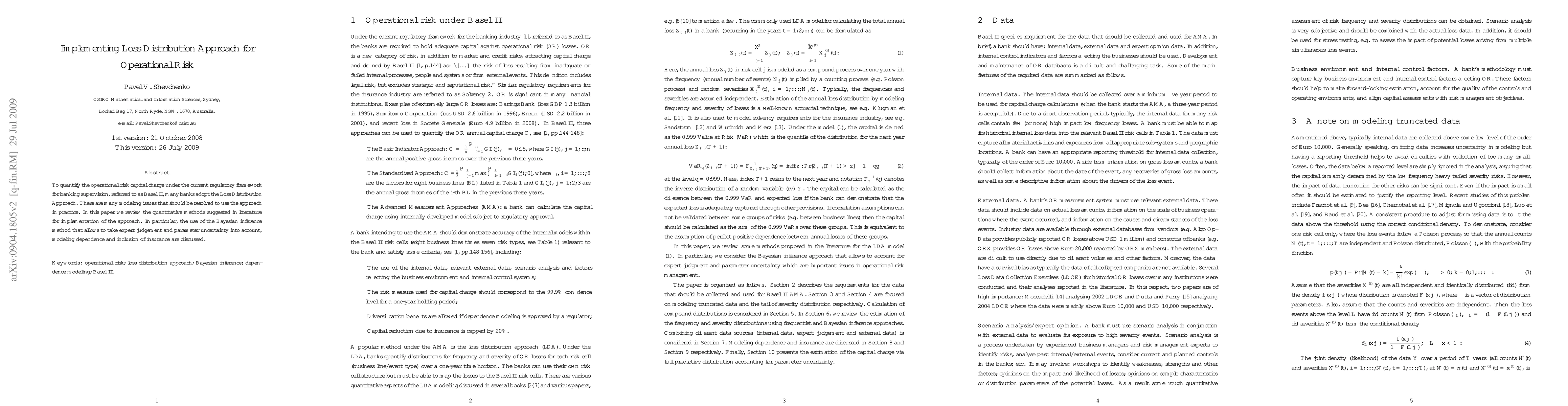 This paper reviews quantitative methods for implementing the Loss Distribution Approach to quantify operational risk capital charges under Basel II, focusing on Bayesian inference, modeling dependence, and the inclusion of insurance to address practical modeling issues.