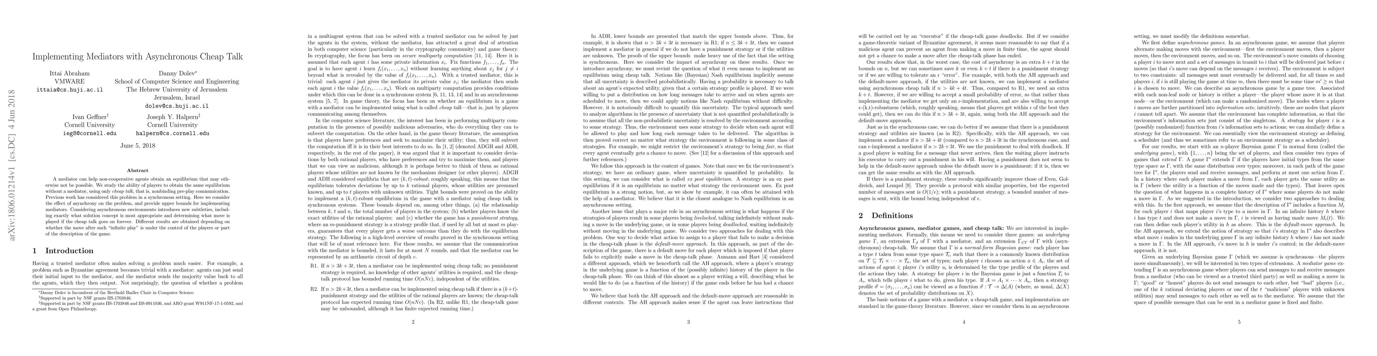 Researchers studied how players can achieve equilibrium without a mediator in asynchronous environments using cheap talk, finding that player control affects the outcome of infinite play.