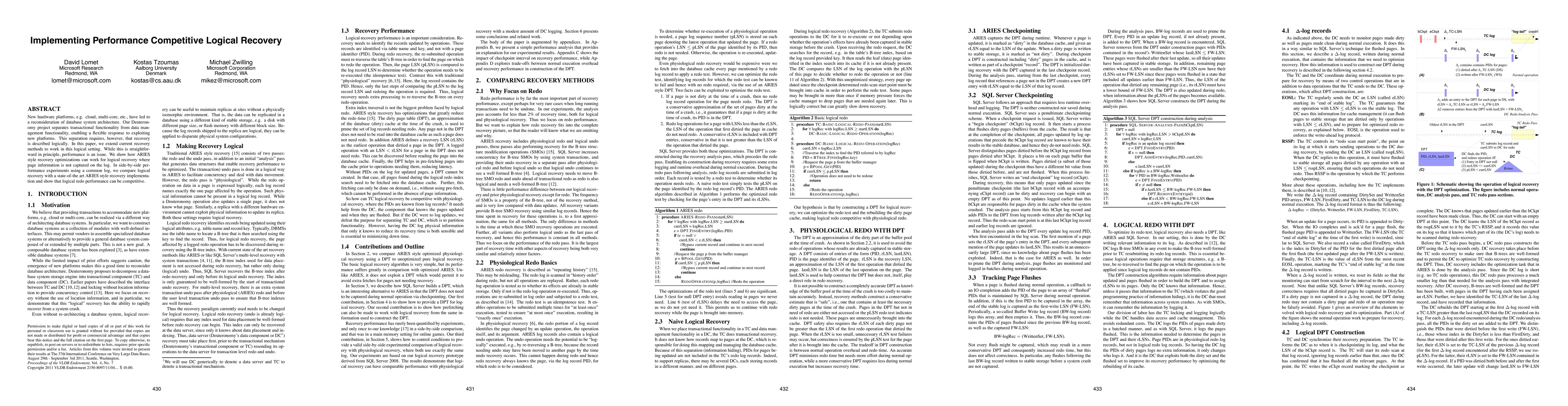 Researchers developed a logical recovery method for new database platforms, showing that it can achieve competitive performance with traditional ARIES-style recovery methods.