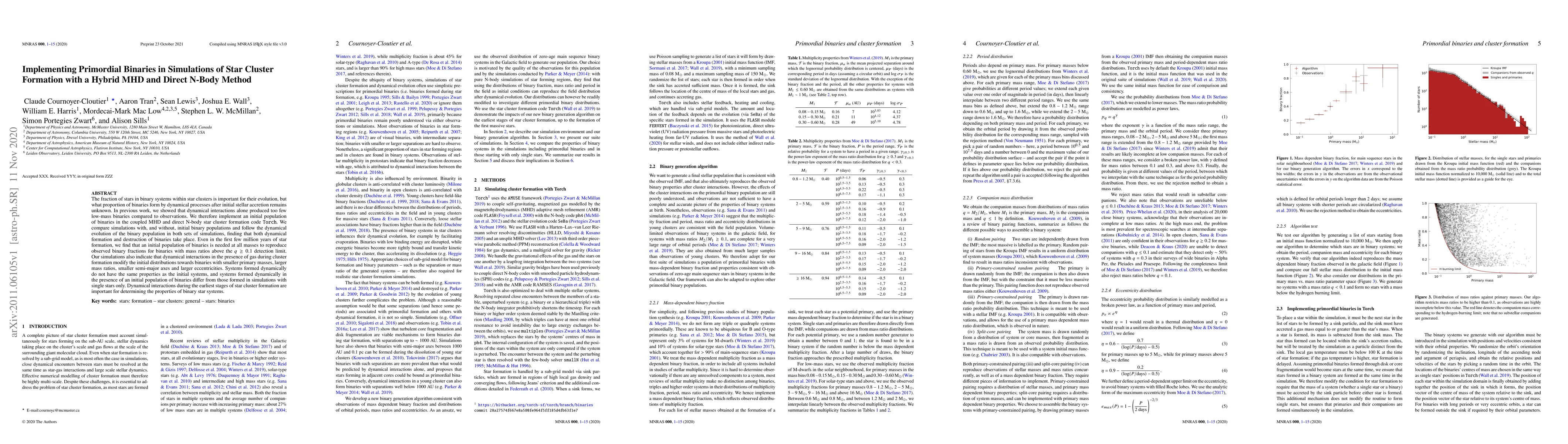 This paper investigates the role of primordial binaries in star cluster formation using a hybrid MHD and direct N-body method. It finds that an initial population of binaries is necessary to match observed binary fractions, and that dynamical interactions during early cluster formation significantly alter the properties of binary systems.
