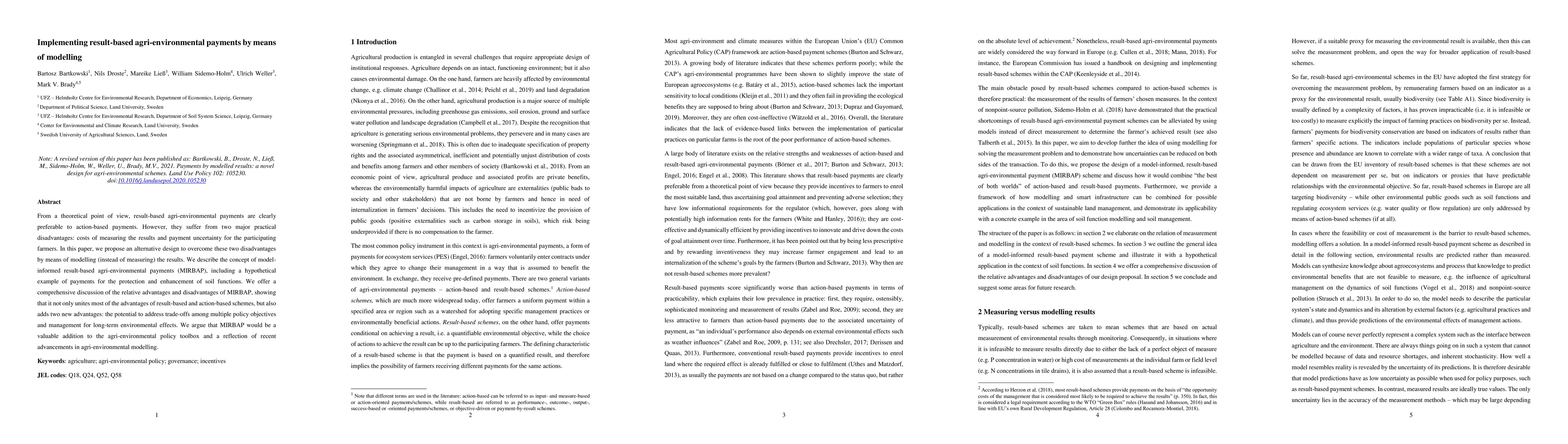 This paper proposes model-informed result-based agri-environmental payments (MIRBAP) to address the practical disadvantages of traditional result-based payments, offering advantages such as cost-effective result modelling, addressing trade-offs among policy objectives, and managing long-term environmental effects.
