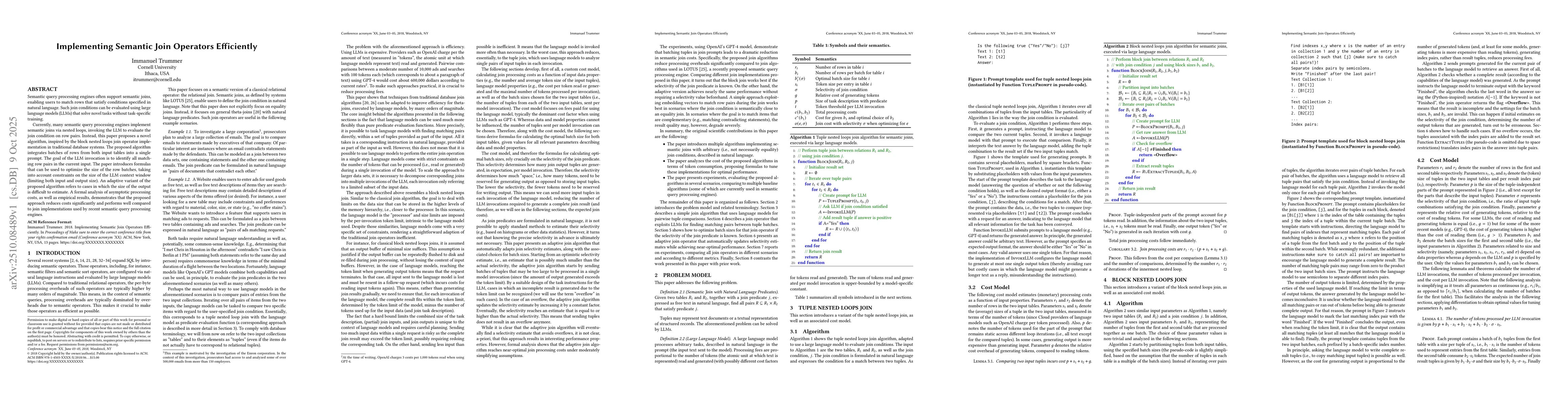 This work addresses the computational inefficiency of semantic joins in large-scale data processing, enabling cost-effective and scalable natural language-based query execution.