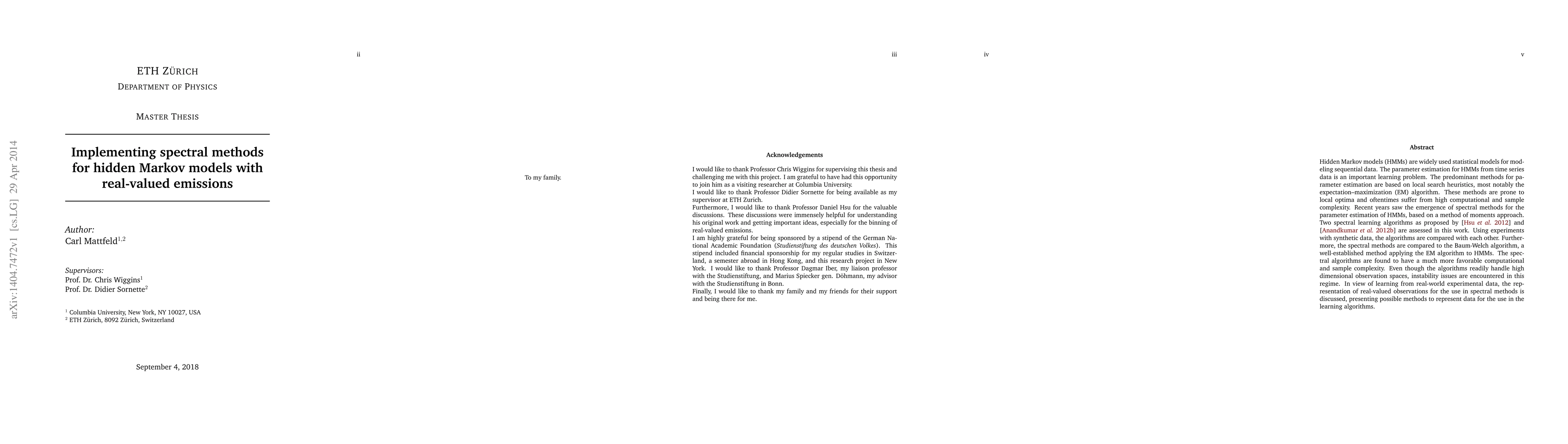 This paper evaluates spectral methods for parameter estimation in hidden Markov models (HMMs) with real-valued emissions, comparing them against the Baum-Welch algorithm. Spectral methods show better computational and sample complexity but face instability in high-dimensional observation spaces. The paper also discusses methods for representing real-valued observations in spectral learning algorithms.