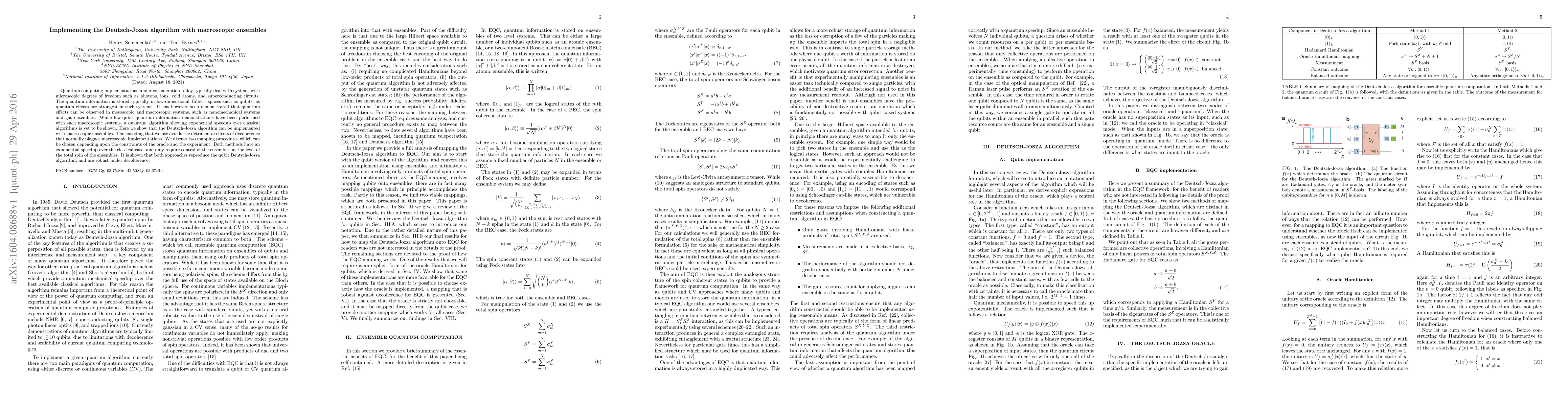 This paper demonstrates the implementation of the Deutsch-Jozsa algorithm using macroscopic ensembles, showing exponential speedup over classical algorithms. The authors propose two mapping procedures that maintain robustness against decoherence and require control of the total spin of the ensembles.