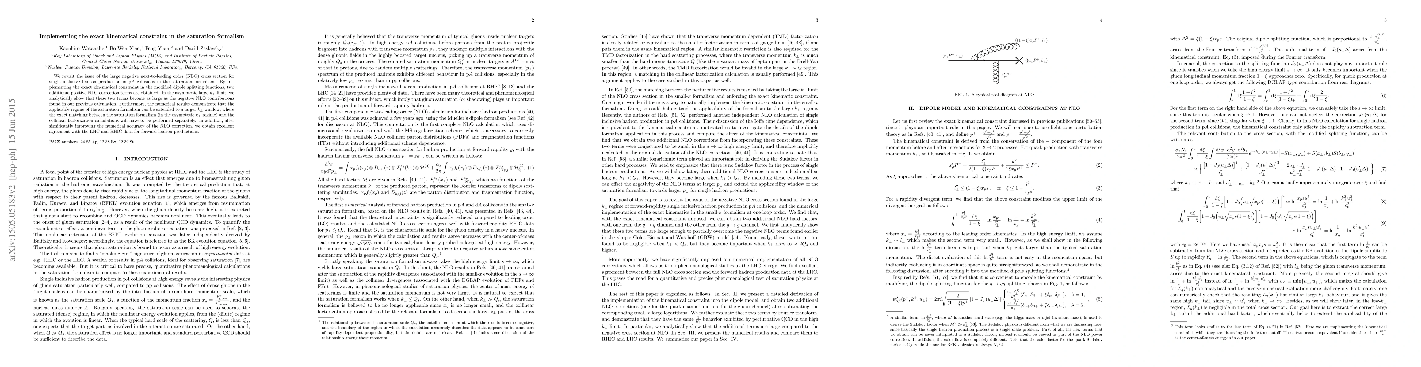 We revisit the issue of the large negative next-to-leading order (NLO) cross section for single inclusive hadron production in $pA$ collisions in the saturation formalism. By implementing the exact kinematical constraint in the modified dipole splitting functions, two additional positive NLO correction terms are obtained. In the asymptotic large $k_\perp$ limit, we analytically show that these two terms become as large as the negative NLO contributions found in our previous calculation. Furthermore, the numerical results demonstrate that the applicable regime of the saturation formalism can be extended to a larger $k_\perp$ window, where the exact matching between the saturation formalism (in the asymptotic $k_\perp$ regime) and the collinear factorization calculations will have to be performed separately. In addition, after significantly improving the numerical accuracy of the NLO correction, we obtain excellent agreement with the LHC and RHIC data for forward hadron productions.
