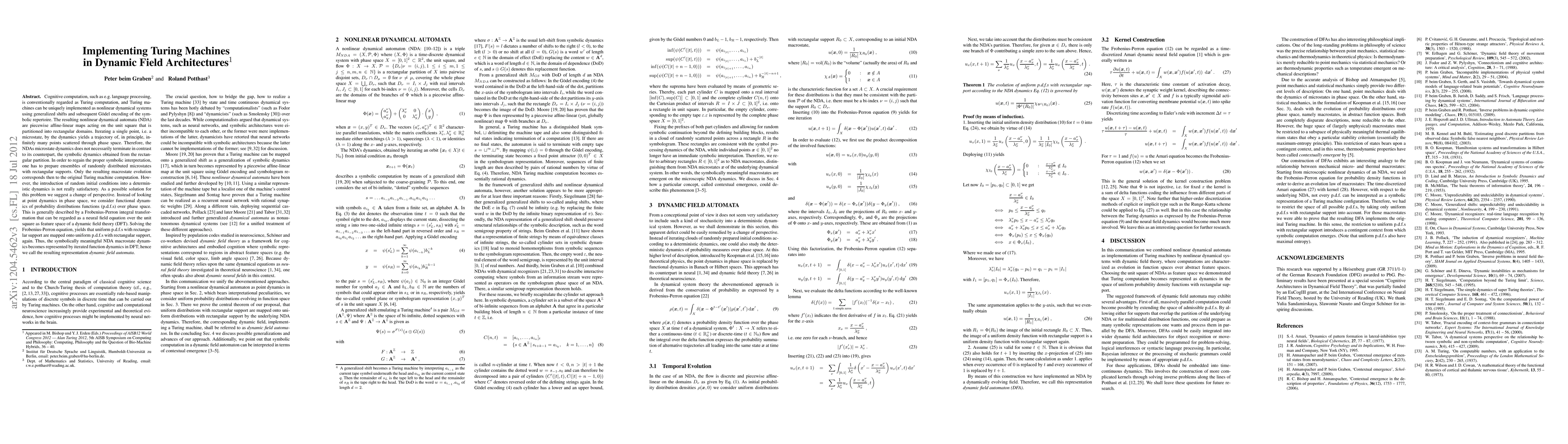 Researchers found that dynamic field architectures can implement Turing machines as nonlinear dynamical systems using generalized shifts and G"odel encoding, enabling computation of cognitive tasks like language processing in a non-terminating but symbolically meaningful way.