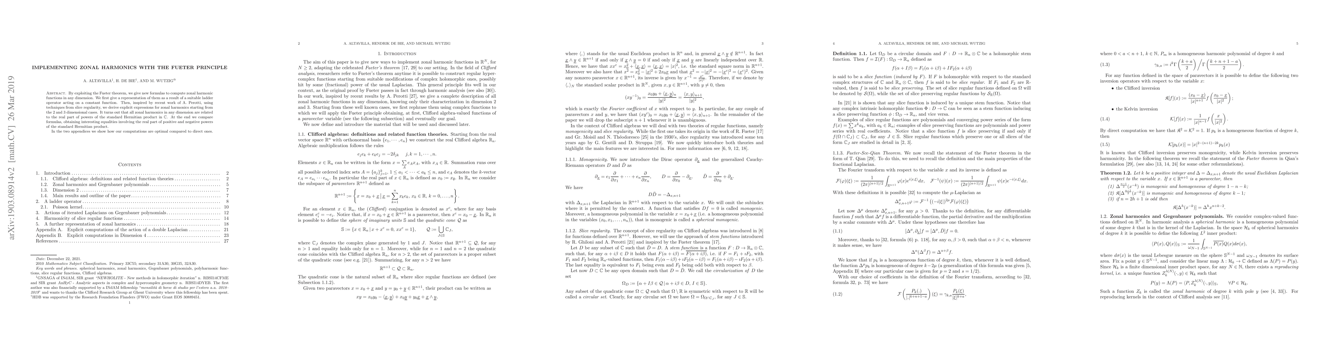 Researchers developed new formulas to compute zonal harmonic functions in any dimension using the Fueter theorem, revealing a connection between these functions and the real part of powers of the standard Hermitian product.