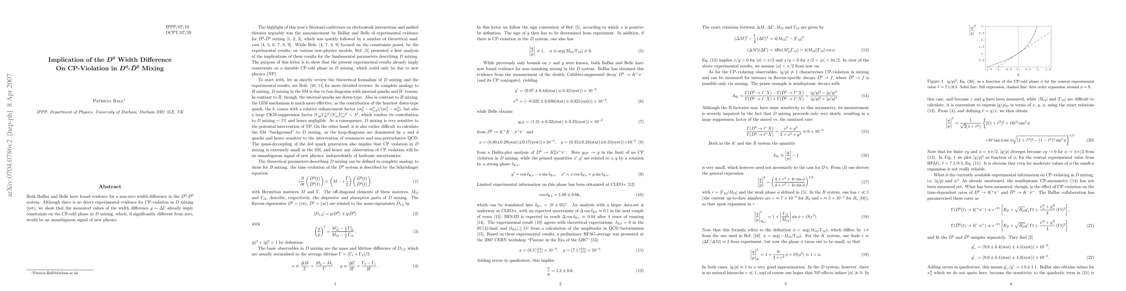 The work highlights the connection between the measured width difference and CP-violation in D mixing, showing that even without direct evidence for CP-violation, the width difference already provides significant constraints on the CP-violating phase, pointing to potential new physics.