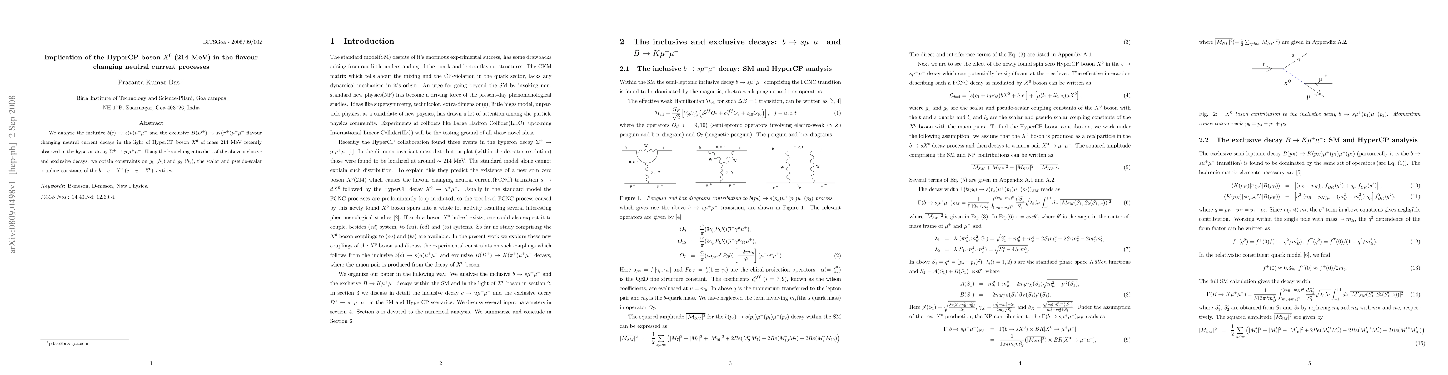 We analyze the inclusive $b(c) \to s(u) \mu^+ \mu^-$ and the exclusive $B(D^+) \to K(\pi^+) \mu^+ \mu^-$ flavour changing neutral current decays in the light of HyperCP boson $X^0$ of mass 214 MeV recently observed in the hyperon decay $\Sigma^+ \to p \mu^+ \mu^-$. Using the branching ratio data of the above inclusive and exclusive decays, we obtain constraints on $g_1 (h_1)$ and $g_2 (h_2)$, the scalar and pseudo-scalar coupling constants of the $b-s-X^0 (c-u-X^0)$ vertices.
