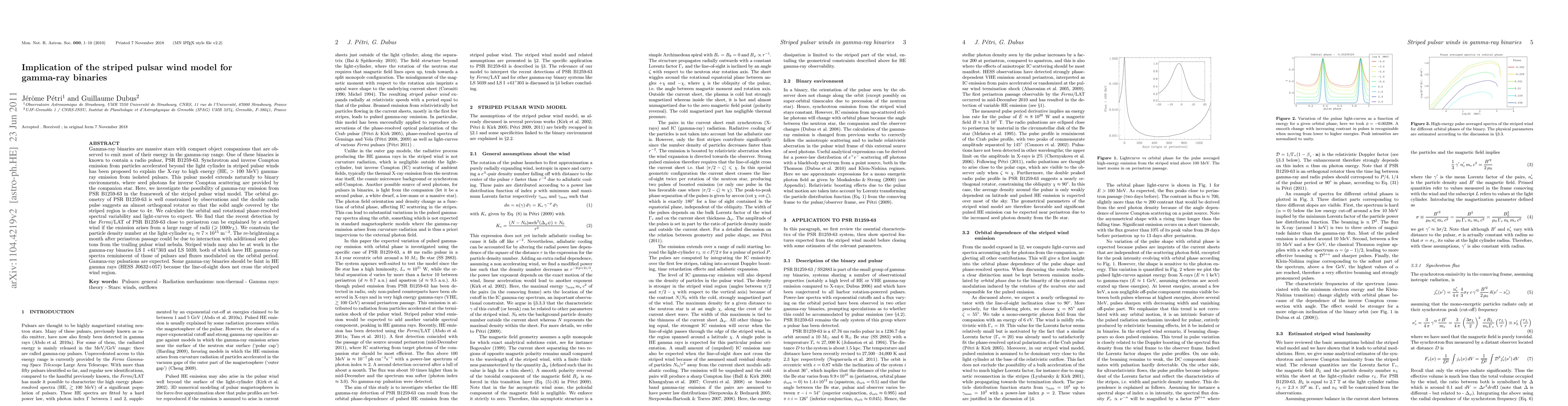This paper explores the striped pulsar wind model to explain gamma-ray emissions from the binary system PSR B1259-63, where a pulsar's wind interacts with a companion star. The study predicts orbital and rotational phase-resolved spectral variability and light-curves based on the model.