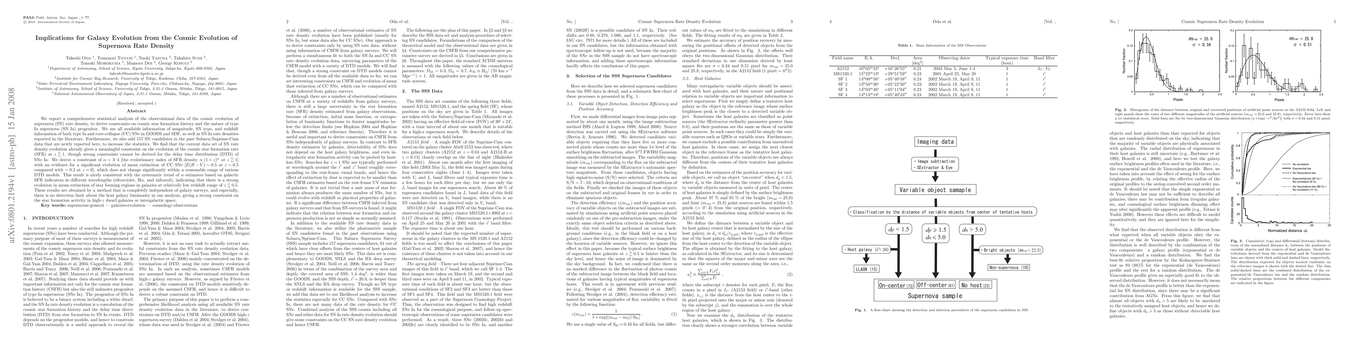 We report a comprehensive statistical analysis of the observational data of the cosmic evolution of supernova (SN) rate density, to derive constraints on cosmic star formation history and the nature of type Ia supernova (SN Ia) progenitor. We use all available information of magnitude, SN type, and redshift information of both type Ia and core-collapse (CC) SNe in GOODS and SDF, as well as SN Ia rate densities reported in the literature. Furthermore, we also add 157 SN candidates in the past Subaru/Suprime-Cam data that are newly reported here, to increase the statistics. We find that the current data set of SN rate density evolution already gives a meaningful constraint on the evolution of the cosmic star formation rate (SFR) at z <~ 1, though strong constraints cannot be derived for the delay time distribution (DTD) of SNe Ia. We derive a constraint of the evolutionary index of SFR density alpha ~ 3--4 [(1+z)^alpha at z <~ 1] with an evidence for a significant evolution of mean extinction of CC SNe [E(B-V) ~ 0.5 at z ~ 0.5 compared with ~ 0.2 at z = 0], which does not change significantly within a reasonable range of various DTD models. This result is nicely consistent with the systematic trend of alpha estimates based on galactic SFR indicators in different wavelengths (ultraviolet, H_alpha, and infrared), indicating that there is a strong evolution in mean extinction of star forming regions in galaxies at relatively low redshift range of z <~ 0.5. These results are obtained by a method that is completely independent of galaxy surveys, and especially, there is no detection limit about the host galaxy luminosity in our analysis, giving a strong constraint on the star formation activity in high-z dwarf galaxies or intergalactic space.