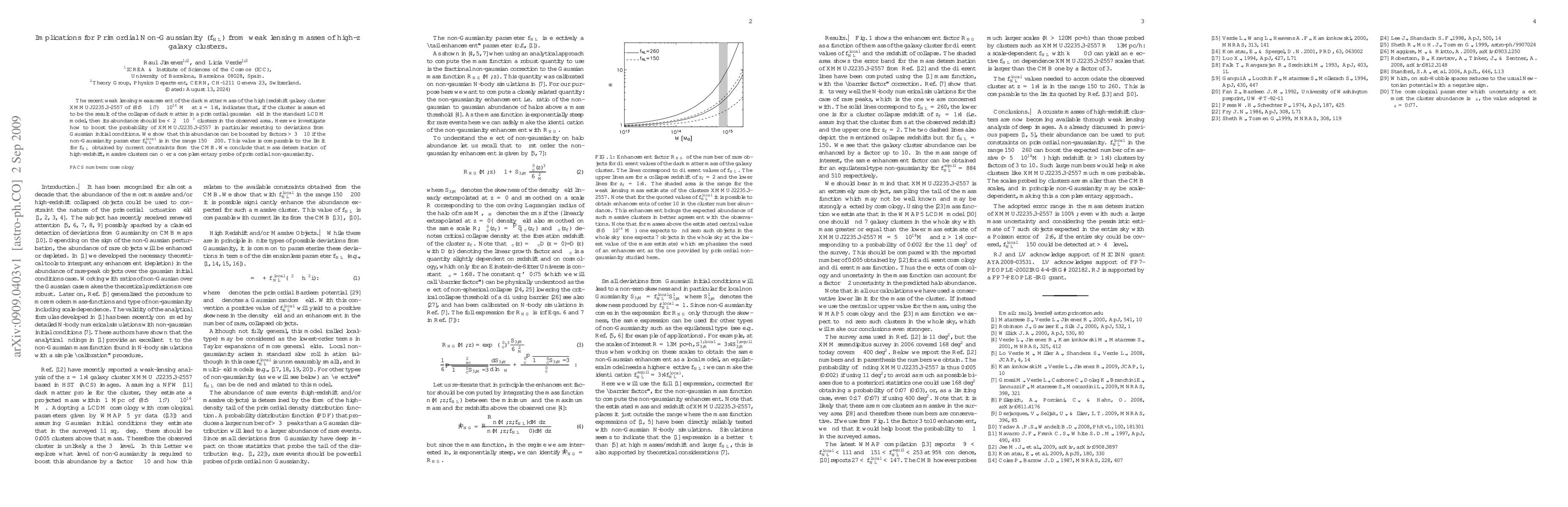 The recent weak lensing measurement of the dark matter mass of the high-redshift galaxy cluster XMMUJ2235.3-2557 of (8.5 +- 1.7) x 10^{14} Msun at z=1.4, indicates that, if the cluster is assumed to be the result of the collapse of dark matter in a primordial gaussian field in the standard LCDM model, then its abundance should be < 0.002 clusters in the observed area. Here we investigate how to boost the probability of XMMUJ2235.3-2557 in particular resorting to deviations from Gaussian initial conditions. We show that this abundance can be boosted by factors > 3-10 if the non-Gaussianity parameter f^local_NL is in the range 150-200. This value is comparable to the limit for f_NL obtained by current constraints from the CMB. We conclude that mass determination of high-redshift, massive clusters can offer a complementary probe of primordial non-gaussianity.