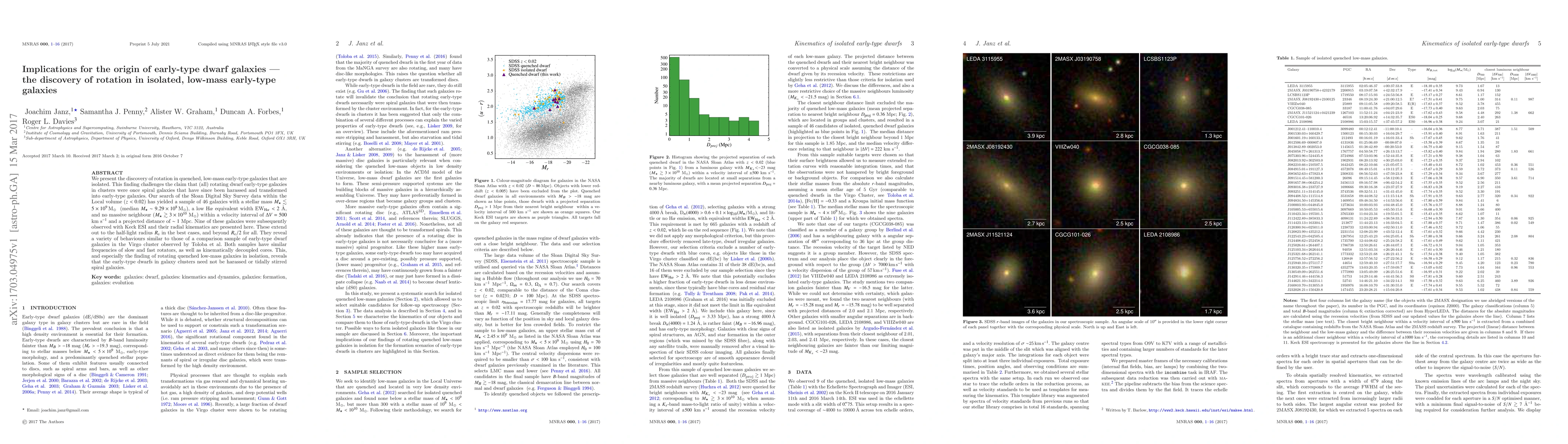 The discovery of rotation in isolated, low-mass early-type dwarf galaxies challenges the notion that all rotating dwarf early-type galaxies in clusters were once spiral galaxies transformed by harassment. This finding suggests that the origin of early-type dwarfs may not solely rely on the transformation of spiral galaxies.