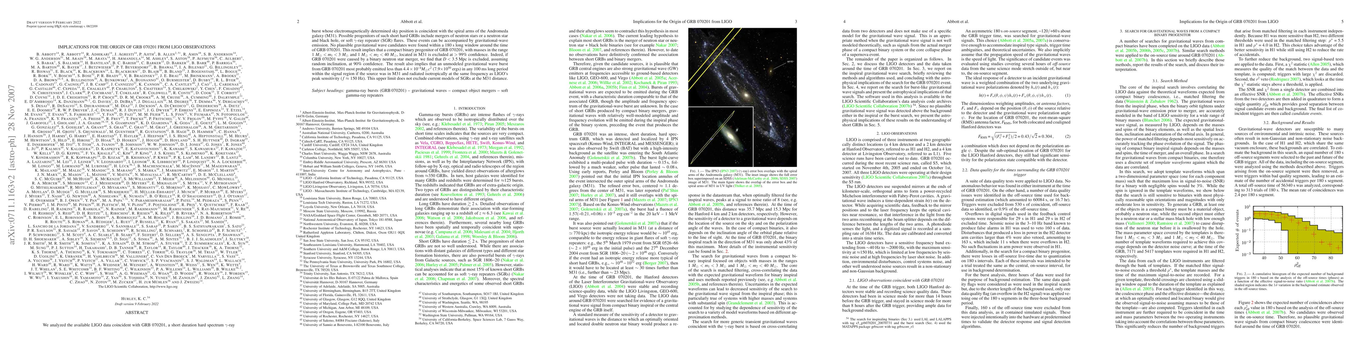 We analyzed the available LIGO data coincident with GRB 070201, a short duration hard spectrum gamma-ray burst whose electromagnetically determined sky position is coincident with the spiral arms of the Andromeda galaxy (M31). Possible progenitors of such short hard GRBs include mergers of neutron stars or a neutron star and black hole, or soft gamma-ray repeater (SGR) flares. These events can be accompanied by gravitational-wave emission. No plausible gravitational wave candidates were found within a 180 s long window around the time of GRB 070201. This result implies that a compact binary progenitor of GRB 070201, with masses in the range 1 M_sun < m_1 < 3 M_sun and 1 M_sun < m_2 < 40 M_sun, located in M31 is excluded at >99% confidence. Indeed, if GRB 070201 were caused by a binary neutron star merger, we find that D < 3.5 Mpc is excluded, assuming random inclination, at 90% confidence. The result also implies that an unmodeled gravitational wave burst from GRB 070201 most probably emitted less than 4.4 x 10^(-4) M_sun c^2 (7.9 x 10^(50) ergs) in any 100 ms long period within the signal region if the source was in M31 and radiated isotropically at the same frequency as LIGO's peak sensitivity (f ~ 150 Hz). This upper limit does not exclude current models of SGRs at the M31 distance.