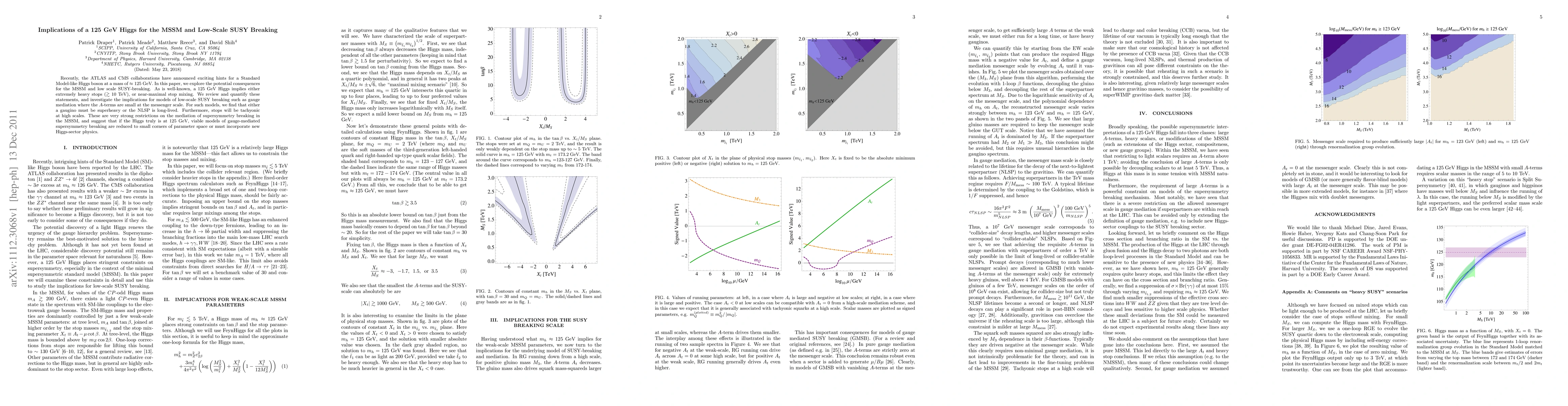 Recently, the ATLAS and CMS collaborations have announced exciting hints for a Standard Model-like Higgs boson at a mass of approximately 125 GeV. In this paper, we explore the potential consequences for the MSSM and low scale SUSY-breaking. As is well-known, a 125 GeV Higgs implies either extremely heavy stops (>~ 10 TeV), or near-maximal stop mixing. We review and quantify these statements, and investigate the implications for models of low-scale SUSY breaking such as gauge mediation where the A-terms are small at the messenger scale. For such models, we find that either a gaugino must be superheavy or the NLSP is long-lived. Furthermore, stops will be tachyonic at high scales. These are very strong restrictions on the mediation of supersymmetry breaking in the MSSM, and suggest that if the Higgs truly is at 125 GeV, viable models of gauge-mediated supersymmetry breaking are reduced to small corners of parameter space or must incorporate new Higgs-sector physics.