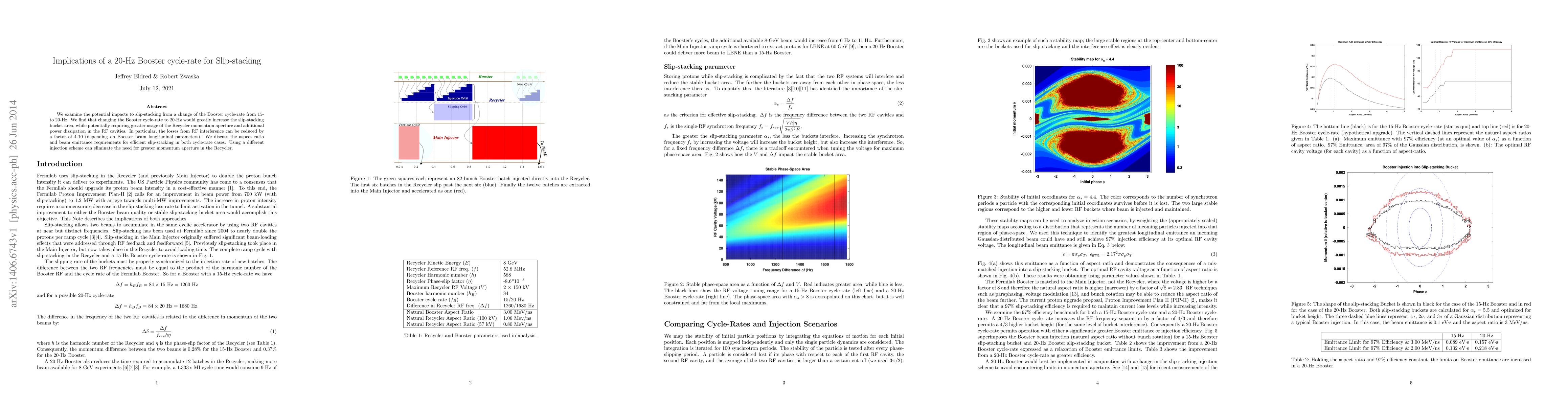 We examine the potential impacts to slip-stacking from a change of the Booster cycle-rate from 15- to 20-Hz. We find that changing the Booster cycle-rate to 20-Hz would greatly increase the slip-stacking bucket area, while potentially requiring greater usage of the Recycler momentum aperture and additional power dissipation in the RF cavities. In particular, the losses from RF interference can be reduced by a factor of 4-10 (depending on Booster beam longitudinal parameters). We discuss the aspect ratio and beam emittance requirements for efficient slip-stacking in both cycle-rate cases. Using a different injection scheme can eliminate the need for greater momentum aperture in the Recycler.