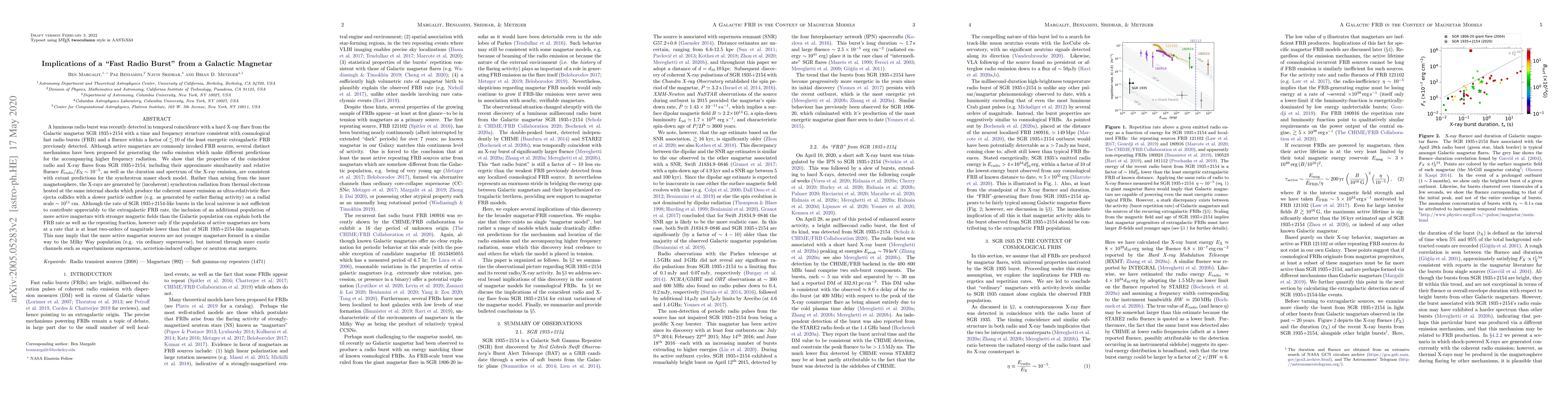 A luminous radio burst was recently detected in temporal coincidence with a hard X-ray flare from the Galactic magnetar SGR 1935+2154 with a time and frequency structure consistent with cosmological fast radio bursts (FRB) and a fluence within a factor of $\lesssim 10$ of the least energetic extragalactic FRB previously detected. Although active magnetars are commonly invoked FRB sources, several distinct mechanisms have been proposed for generating the radio emission which make different predictions for the accompanying higher frequency radiation. We show that the properties of the coincident radio and X-ray flares from SGR 1935+2154, including their approximate simultaneity and relative fluence $E_{\rm radio}/E_{\rm X} \sim 10^{-5}$, as well as the duration and spectrum of the X-ray emission, are consistent with extant predictions for the synchrotron maser shock model. Rather than arising from the inner magnetosphere, the X-rays are generated by (incoherent) synchrotron radiation from thermal electrons heated at the same shocks which produce the coherent maser emission. Although the rate of SGR 1935+2154-like bursts in the local universe is not sufficient to contribute appreciably to the extragalactic FRB rate, the inclusion of an additional population of more active magnetars with stronger magnetic fields than the Galactic population can explain both the FRB rate as well as the repeating fraction, however only if the population of active magnetars are born at a rate that is at least two-orders of magnitude lower than that of SGR 1935+2154-like magnetars. This may imply that the more active magnetar sources are not younger magnetars formed in a similar way to the Milky Way population (e.g. via ordinary supernovae), but instead through more exotic channels such as superluminous supernovae, accretion-induced collapse or neutron star mergers.