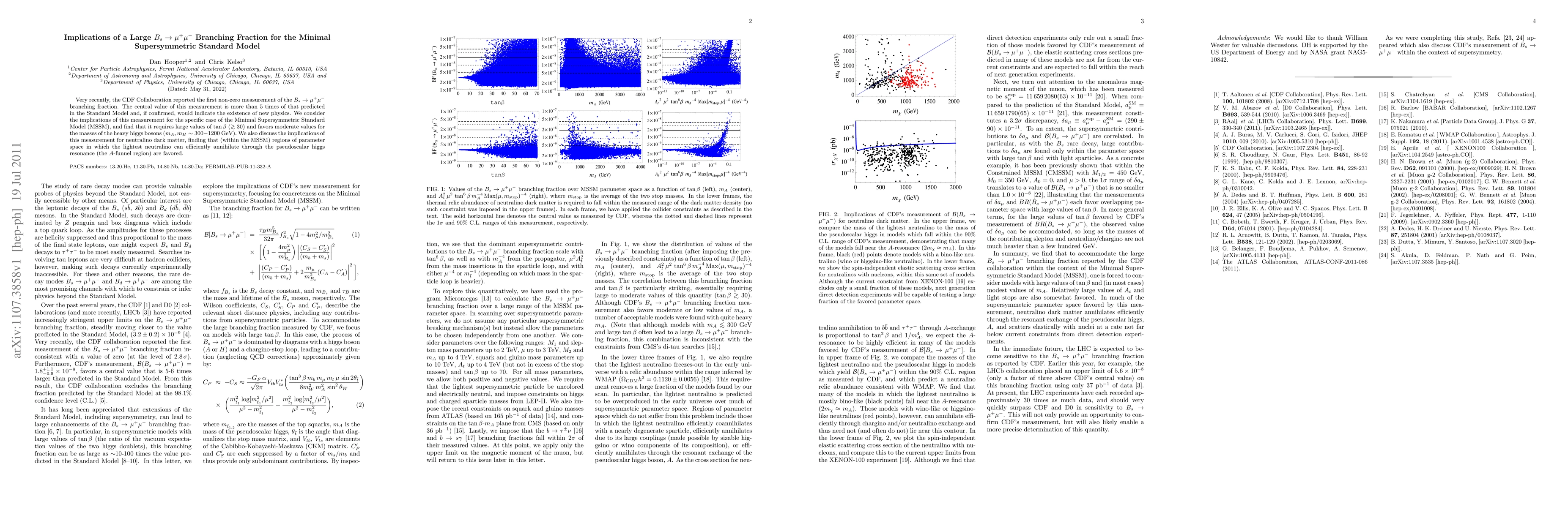 Very recently, the CDF Collaboration reported the first non-zero measurement of the $B_s \rightarrow \mu^+ \mu^-$ branching fraction. The central value of this measurement is more than 5 times of that predicted in the Standard Model and, if confirmed, would indicate the existence of new physics. We consider the implications of this measurement for the specific case of the Minimal Supersymmetric Standard Model (MSSM), and find that it requires large values of $\tan \beta$ ($\gsim 30$) and favors moderate values for the masses of the heavy higgs bosons ($m_A, m_H \sim 300-1200$ GeV). We also discuss the implications of this measurement for neutralino dark matter, finding that (within the MSSM) regions of parameter space in which the lightest neutralino can efficiently annihilate through the pseudoscalar higgs resonance (the $A$-funnel region) are favored.