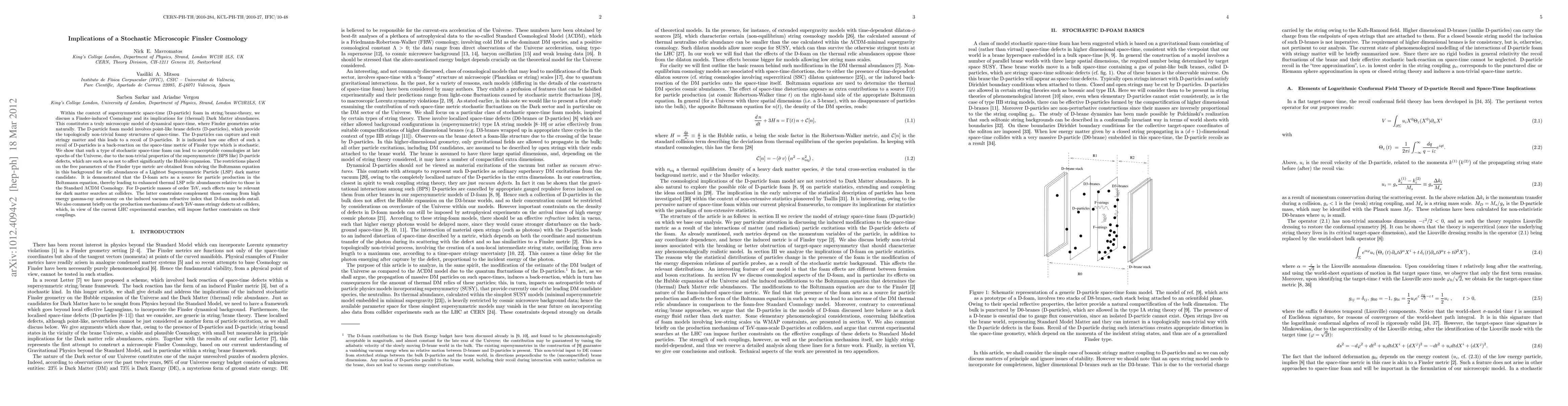 Within the context of supersymmetric space-time (D-particle) foam in string/brane-theory, we discuss a Finsler-induced Cosmology and its implications for (thermal) Dark Matter abundances. This constitutes a truly microscopic model of dynamical space-time, where Finsler geometries arise naturally. The D-particle foam model involves point-like brane defects (D-particles), which provide the topologically non-trivial foamy structures of space-time. The D-particles can capture and emit stringy matter and this leads to a recoil of D-particles. It is indicated how one effect of such a recoil of D-particles is a back-reaction on the space-time metric of Finsler type which is stochastic. We show that such a type of stochastic space-time foam can lead to acceptable cosmologies at late epochs of the Universe, due to the non-trivial properties of the supersymmetric (BPS like) D-particle defects, which are such so as not to affect significantly the Hubble expansion. The restrictions placed on the free parameters of the Finsler type metric are obtained from solving the Boltzmann equation in this background for relic abundances of a Lightest Supersymmetric Particle (LSP) dark matter candidate. It is demonstrated that the D-foam acts as a source for particle production in the Boltzmann equation, thereby leading to enhanced thermal LSP relic abundances relative to those in the Standard LambdaCDM Cosmology. For D-particle masses of order TeV, such effects may be relevant for dark matter searches at colliders. The latter constraints complement those coming from high energy gamma-ray astronomy on the induced vacuum refractive index that D-foam models entail. We also comment briefly on the production mechanisms of such TeV-mass stringy defects at colliders, which, in view of the current LHC experimental searches, will impose further constraints on their couplings.
