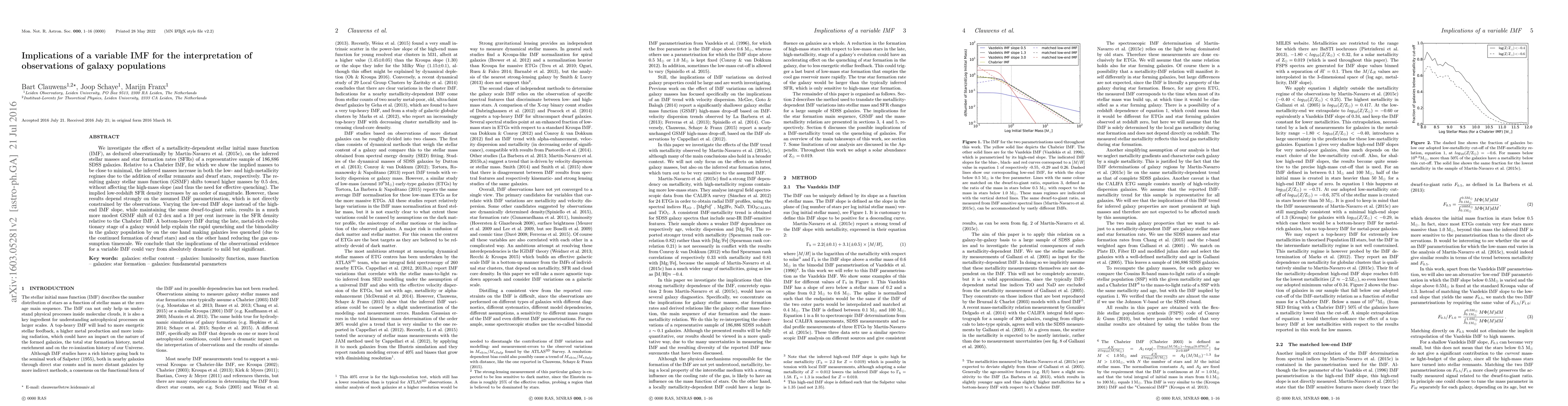 We investigate the effect of a metallicity-dependent stellar initial mass function (IMF), as deduced observationally by Martin-Navarro et al. (2015c), on the inferred stellar masses and star formation rates (SFRs) of a representative sample of 186,886 SDSS galaxies. Relative to a Chabrier IMF, for which we show the implied masses to be close to minimal, the inferred masses increase in both the low- and high-metallicity regimes due to the addition of stellar remnants and dwarf stars, respectively. The resulting galaxy stellar mass function (GSMF) shifts toward higher masses by 0.5 dex, without affecting the high-mass slope (and thus the need for effective quenching). The implied low-redshift SFR density increases by an order of magnitude. However, these results depend strongly on the assumed IMF parametrisation, which is not directly constrained by the observations. Varying the low-end IMF slope instead of the high-end IMF slope, while maintaining the same dwarf-to-giant ratio, results in a much more modest GSMF shift of 0.2 dex and a 10 per cent increase in the SFR density relative to the Chabrier IMF. A bottom-heavy IMF during the late, metal-rich evolutionary stage of a galaxy would help explain the rapid quenching and the bimodality in the galaxy population by on the one hand making galaxies less quenched (due to the continued formation of dwarf stars) and on the other hand reducing the gas consumption timescale. We conclude that the implications of the observational evidence for a variable IMF could vary from absolutely dramatic to mild but significant.