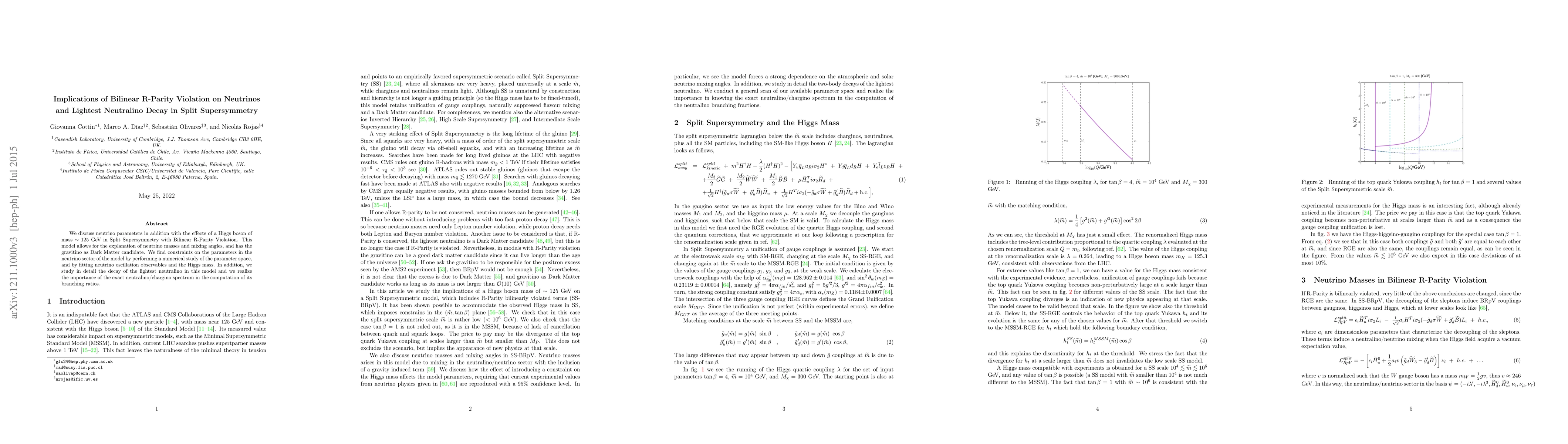 This paper explores the implications of bilinear R-parity violation in Split Supersymmetry, focusing on neutrino masses and mixing angles, and the decay of the lightest neutralino. It finds constraints on neutrino parameters through numerical studies and fits to observed neutrino oscillations and the Higgs boson mass.