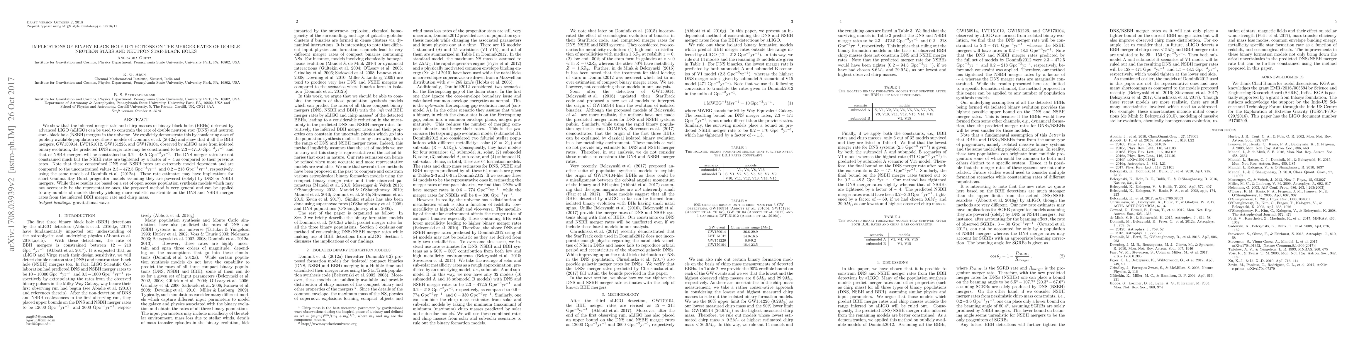 This paper demonstrates that the merger rates of double neutron stars (DNS) and neutron star-black hole (NSBH) systems can be constrained using the detected binary black hole (BBH) mergers observed by advanced LIGO. The study shows that BBH detections tighten NSBH merger rates by a factor of four, while DNS merger rates are less constrained, highlighting the method's potential for refining estimates of short Gamma Ray Burst progenitor models.