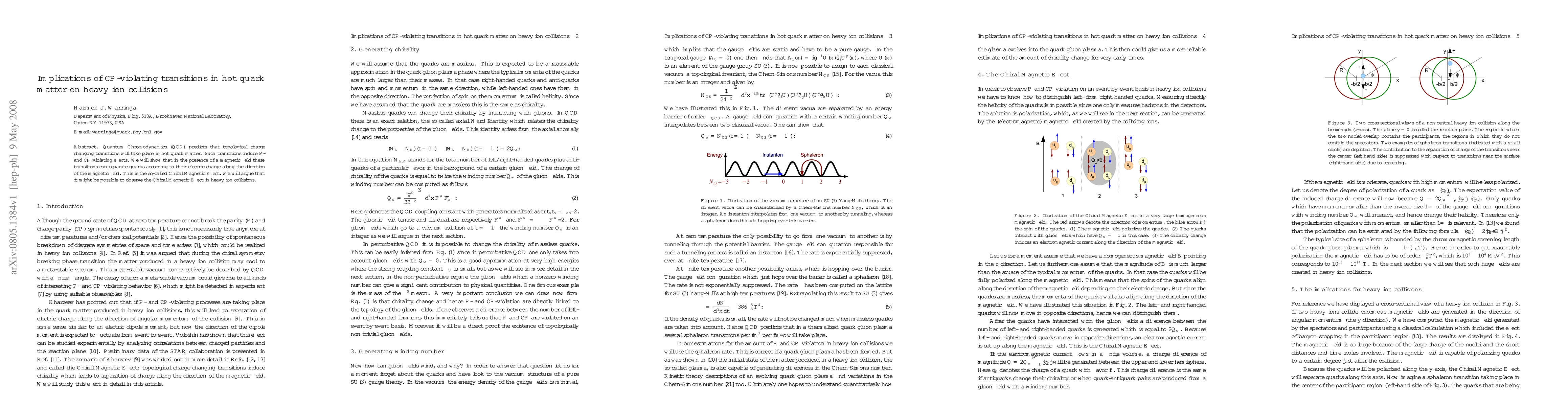 Summary: The paper explores how CP-violating transitions in hot quark matter, predicted by Quantum Chromodynamics, can manifest as the Chiral Magnetic Effect in heavy ion collisions, potentially observable due to topological charge changing transitions in a magnetic field.