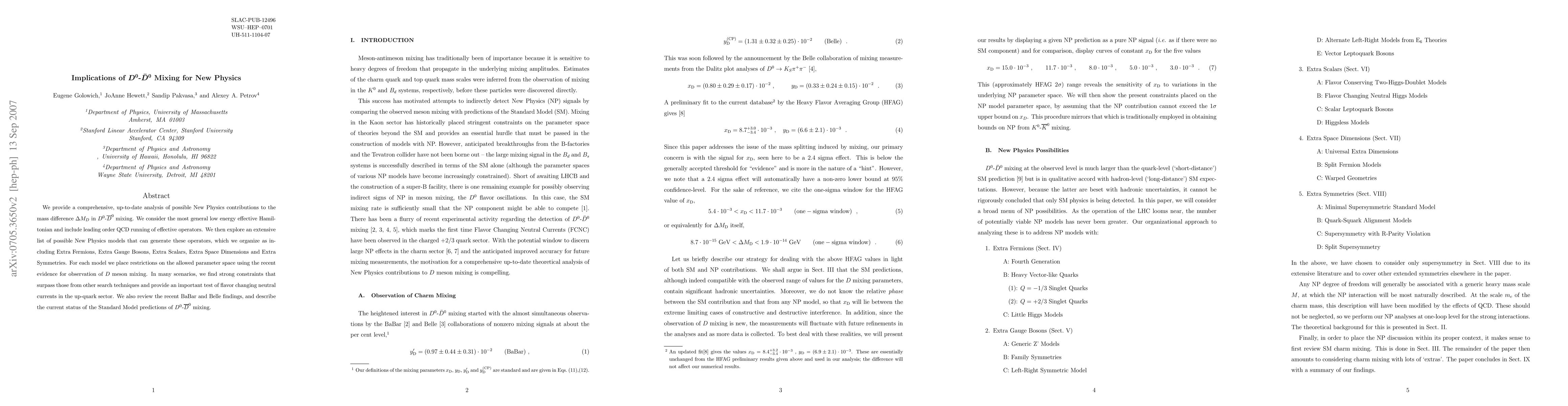 This paper analyzes New Physics contributions to $D^0$-${\bar D}^0$ mixing, focusing on the mass difference $\Delta M_D$. It explores various models including extra fermions, gauge bosons, scalars, dimensions, and symmetries, and uses recent observations to constrain their parameter spaces, providing strong tests for flavor changing neutral currents.