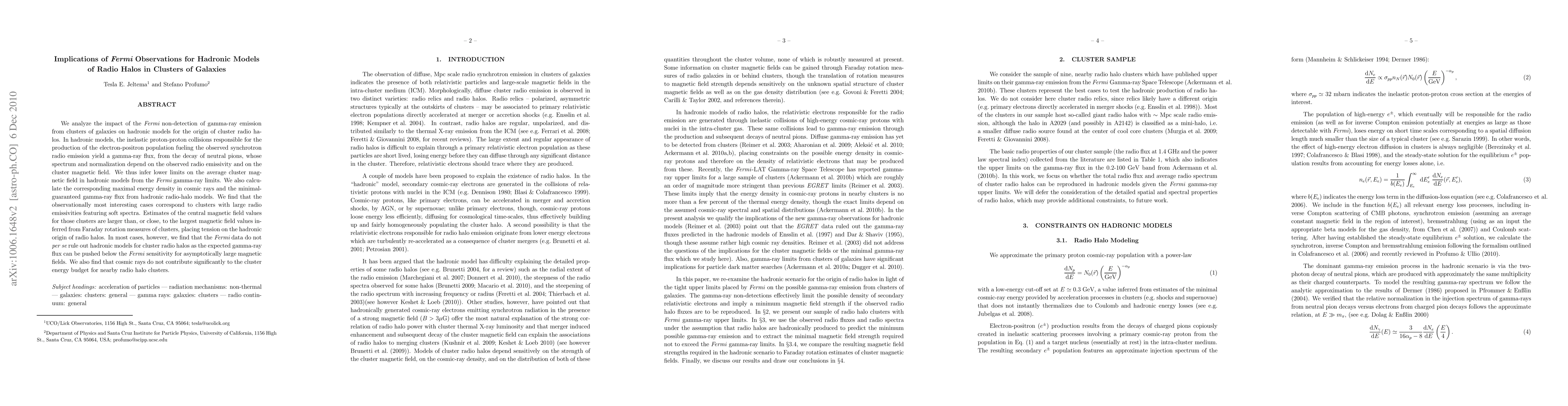 The Fermi non-detection of gamma-ray emission from galaxy clusters indicates lower limits on average cluster magnetic fields in hadronic models, challenging their origin of radio halos, but not ruling them out entirely.