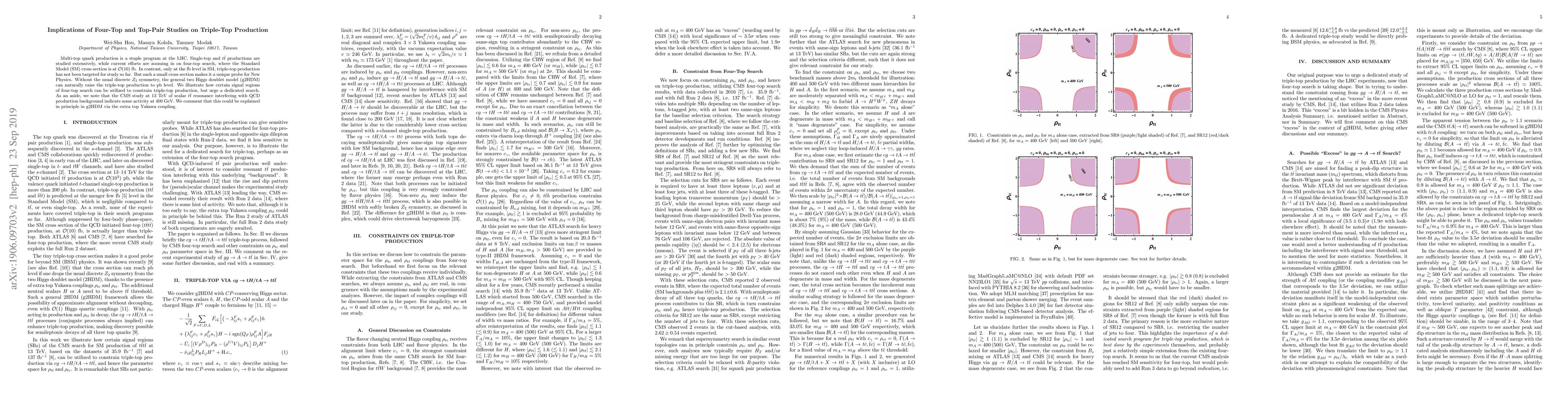 This paper explores the potential implications of four-top and top-pair studies on the production of triple-top quarks, noting that while the Standard Model predicts triple-top production at the fb level, it could be significantly enhanced in the general two Higgs doublet model. It suggests utilizing four-top search regions to constrain triple-top production and calls for a dedicated search due to its potential to reveal New Physics.