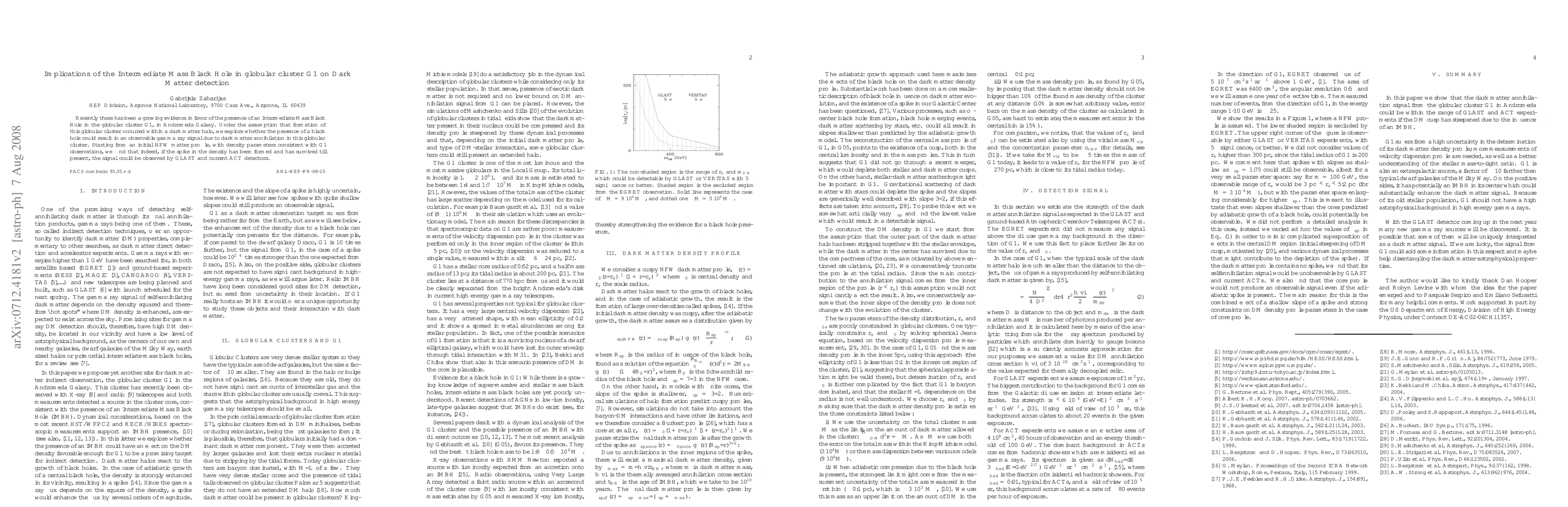 This paper investigates the potential for detecting an observable gamma-ray signal from dark matter annihilation in the globular cluster G1 due to the presence of an intermediate mass black hole. The study finds that if the adiabatic growth of dark matter density around the black hole has persisted, current detectors like GLAST and ACT could observe this signal.