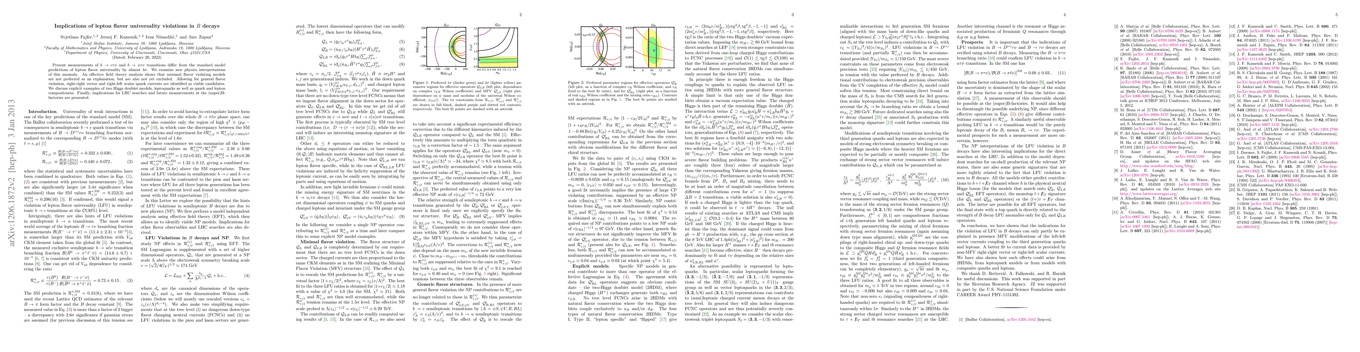 This paper investigates anomalies in B decay transitions that deviate from standard model predictions of lepton flavor universality, suggesting new physics beyond the Standard Model. While minimal flavor violating models are not favored, general flavor violation and specific new physics scenarios like right-right vector currents and leptoquarks are proposed as viable explanations.