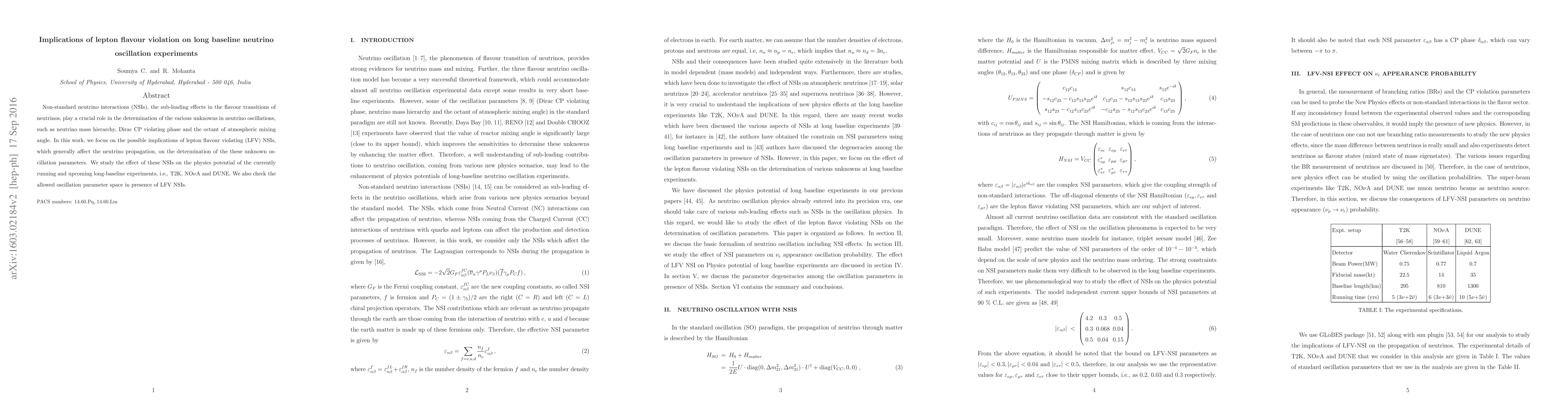 Non-standard neutrino interactions (NSIs), the sub-leading effects in the flavour transitions of neutrinos, play a crucial role in the determination of the various unknowns in neutrino oscillations, such as neutrino mass hierarchy, Dirac CP violating phase and the octant of atmospheric mixing angle. In this work, we focus on the possible implications of lepton flavour violating (LFV) NSIs, which generally affect the neutrino propagation, on the determination of the these unknown oscillation parameters. We study the effect of these NSIs on the physics potential of the currently running and upcoming long-baseline experiments, i.e., T2K, NO$\nu$A and DUNE. We also check the allowed oscillation parameter space in presence of LFV NSIs.